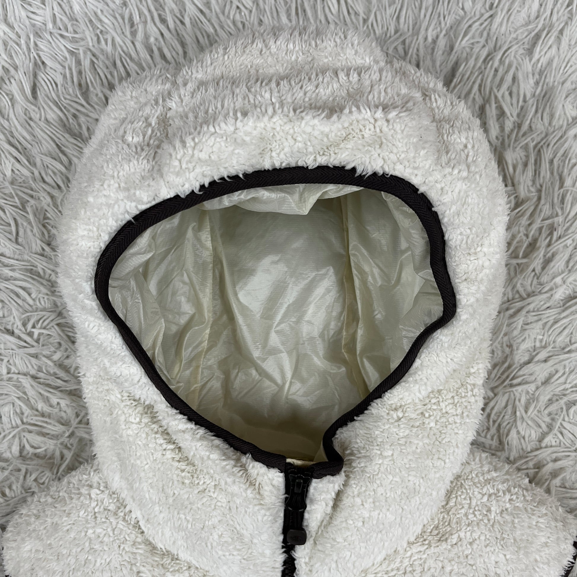 日本未発売の非常に珍しいモデルで、表面はモコモコしたボア素材、中綿には高品質な700フィルパワーのダウンが使用されており、デザイン性と保温性を兼ね備えています。