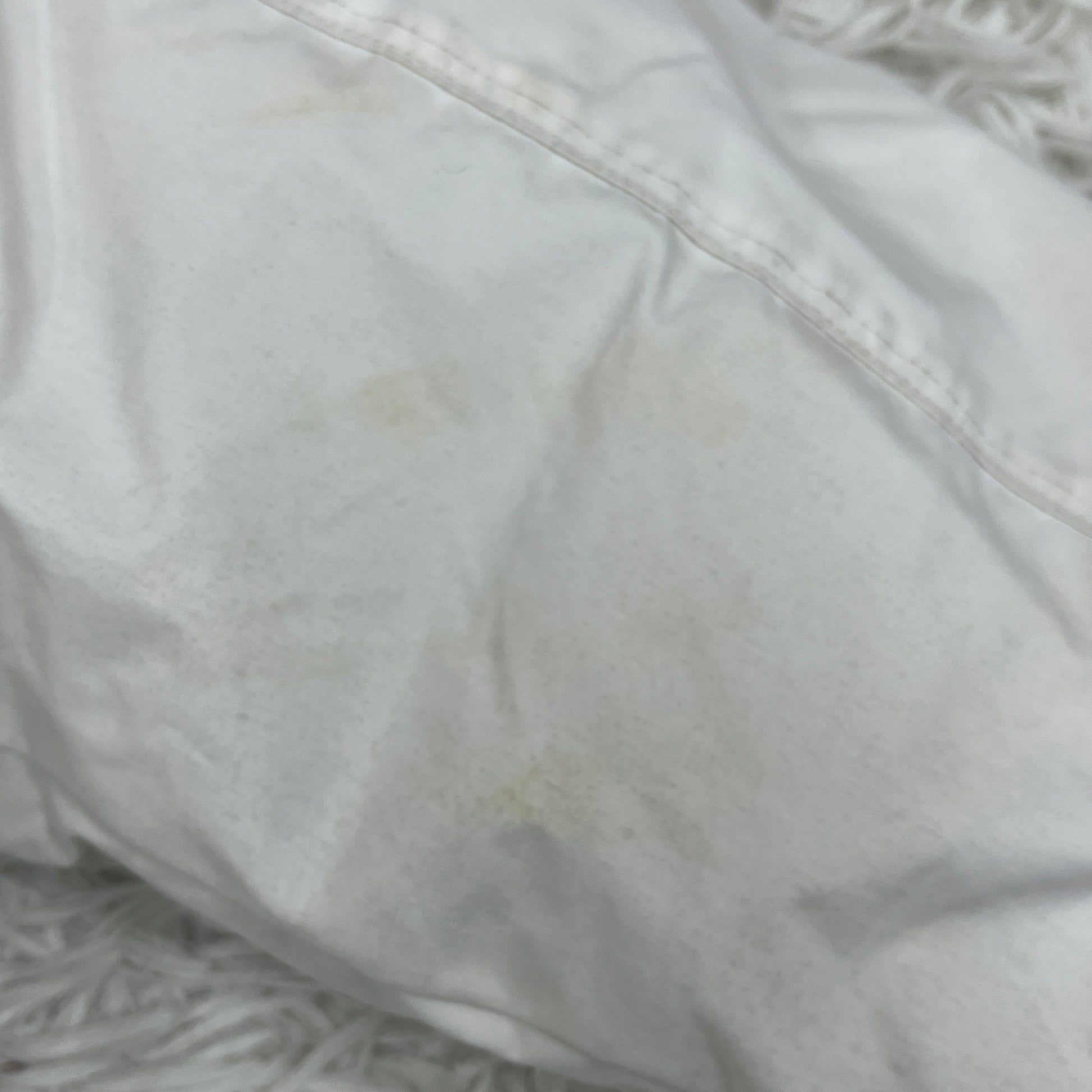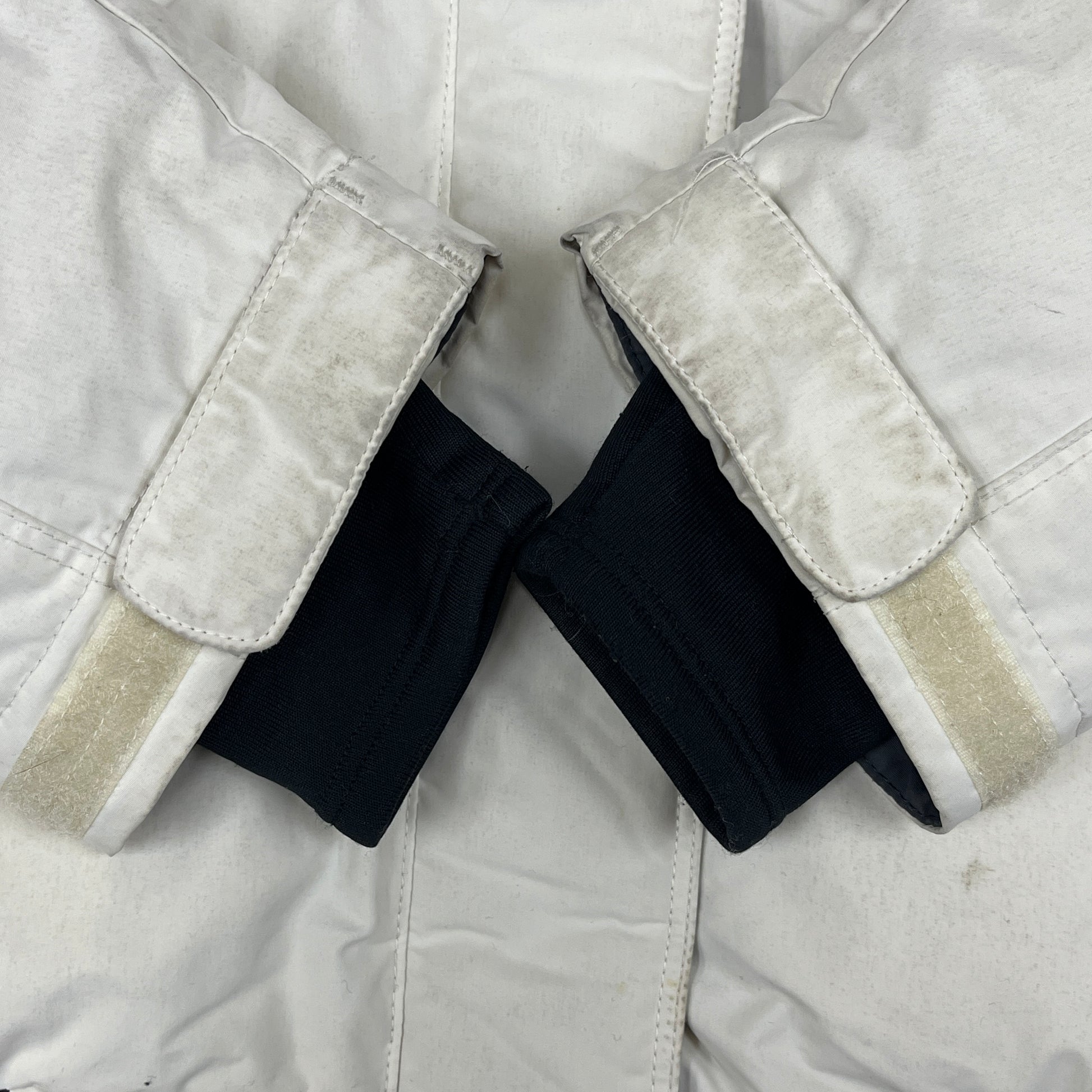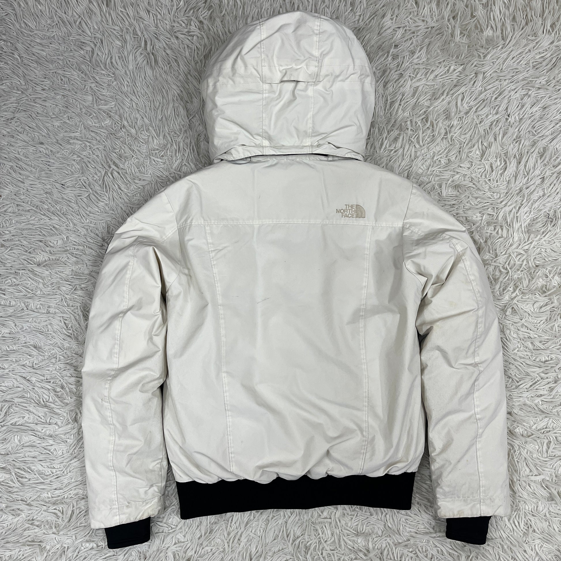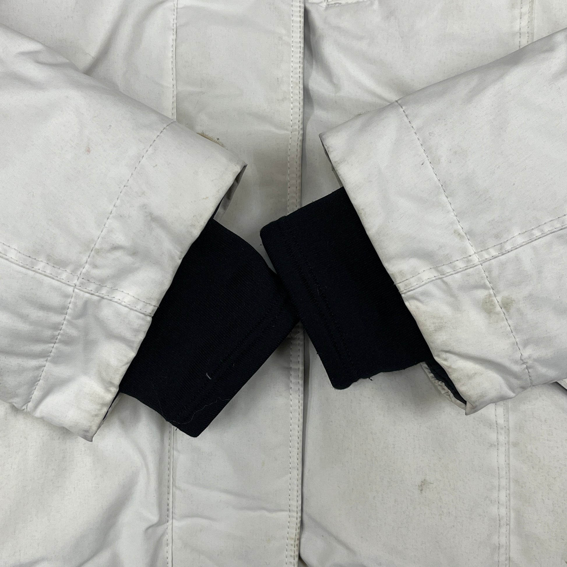 【状態】 ・袖口に汚れ、マジックテープ部分に使用感があります(写真2枚目参照)。 ・腰付近やサイドに数箇所、薄い汚れが見受けられます。 全体的に着用感はありますが、ダウンのボリュームはしっかりしており、まだまだ現役で活躍できるコンディションです。