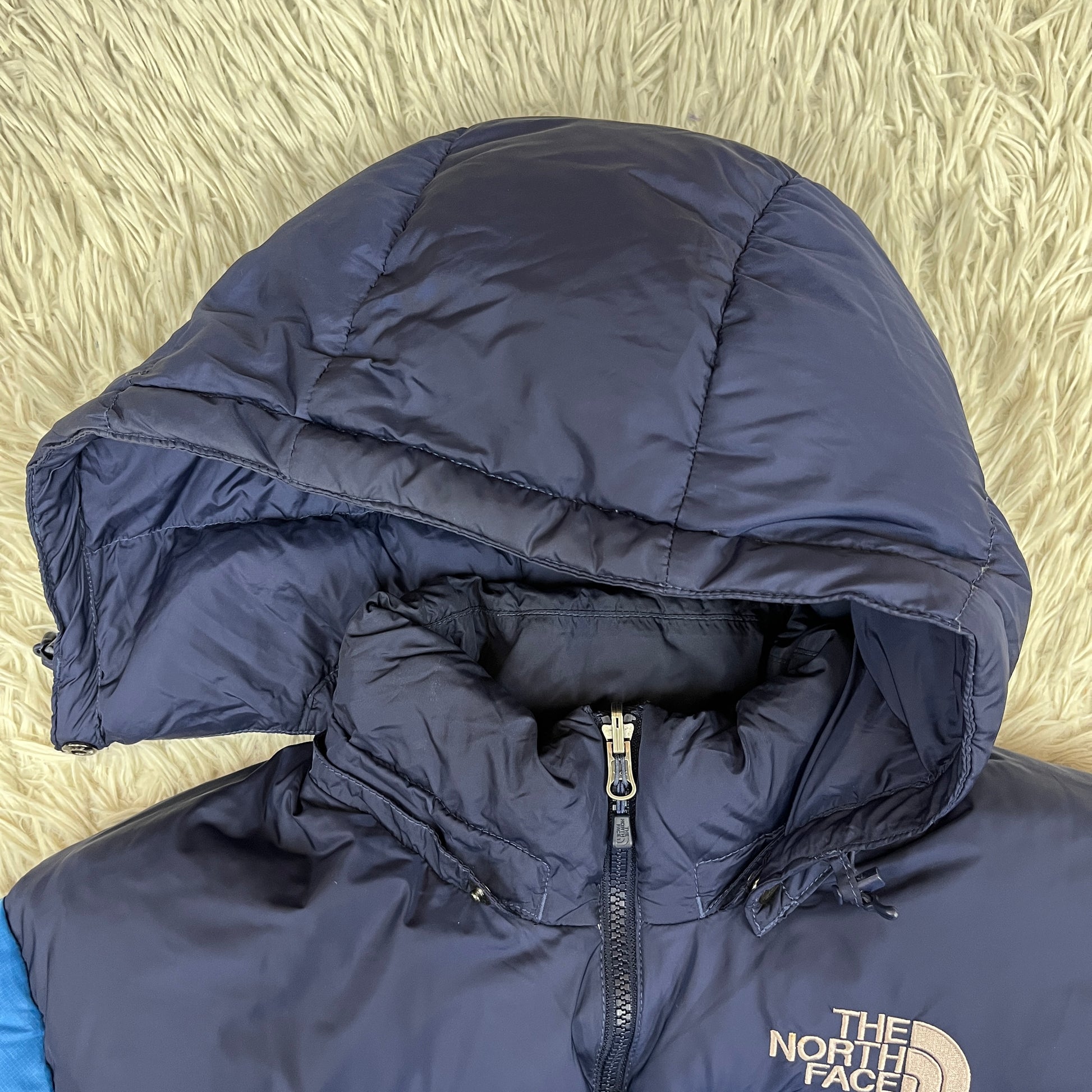 ザ・ノース・フェイス ヌプシ ダウンジャケット 700フィルパワー メンズM(95) ブルー×ネイビー フード脱着可能 #154