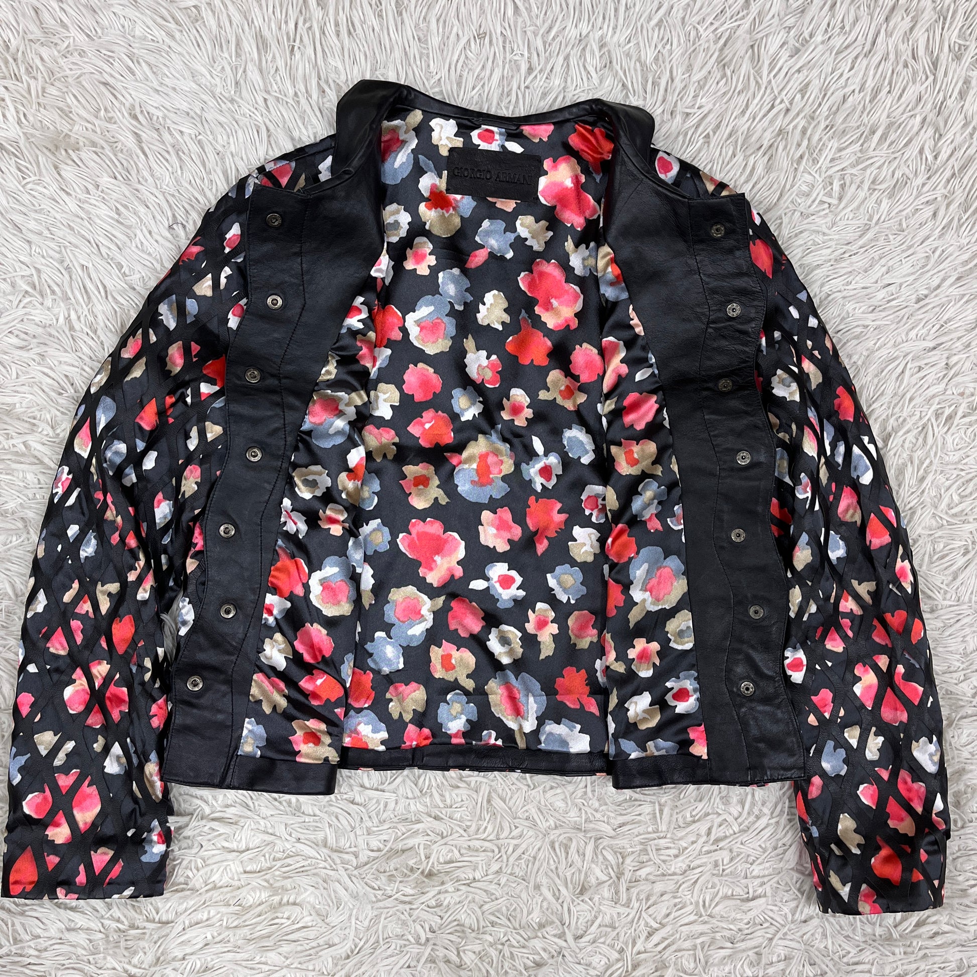 GIORGIO ARMANI ジョルジオ アルマーニ 花柄 レザー ジャケット レディース M #105