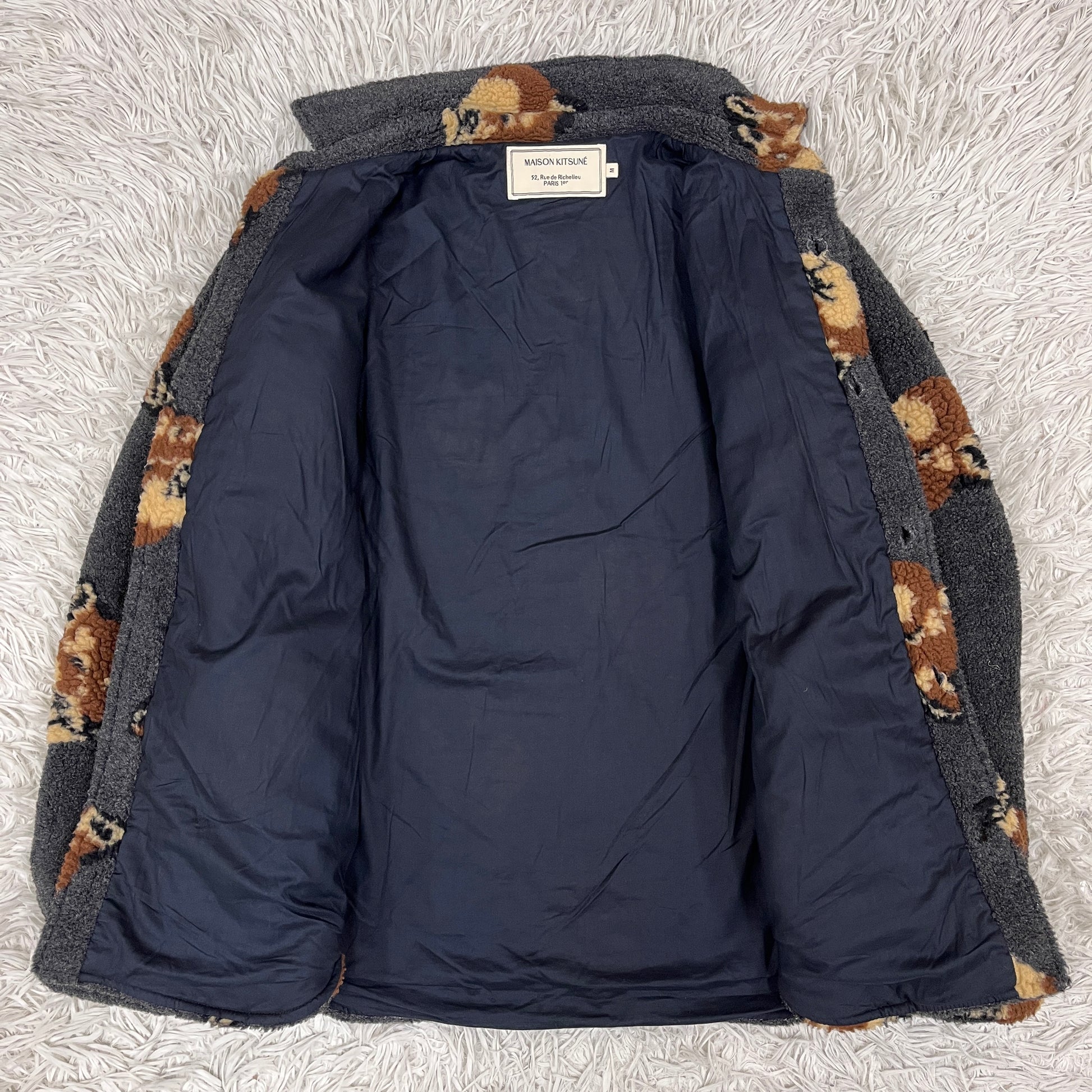 MAISON KITSUNÉ メゾンキツネ フリースジャケット グレー メンズM キツネ柄 ボアシャツジャケット #98
