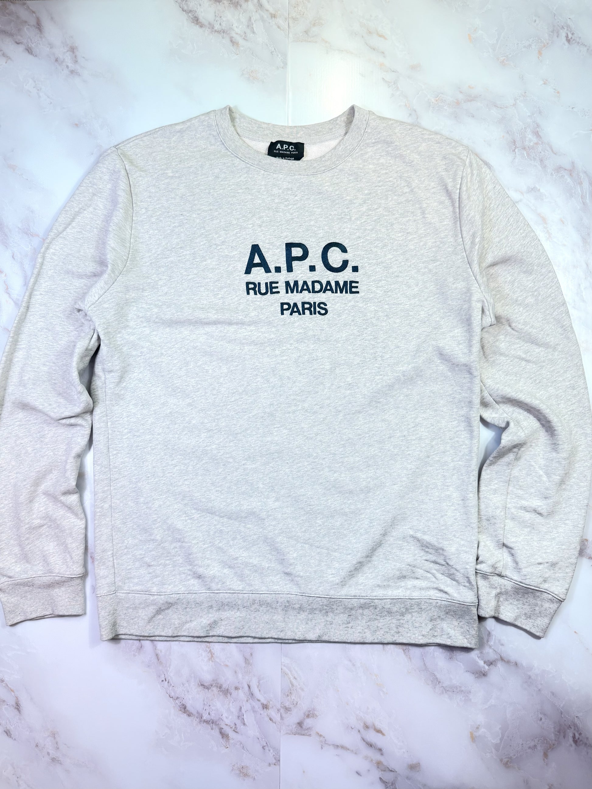 A.P.C. Rue Madame Paris ロゴ刺繍スウェットシャツ ライトグレー XLサイズ APC トレーナー 裏毛 メンズ