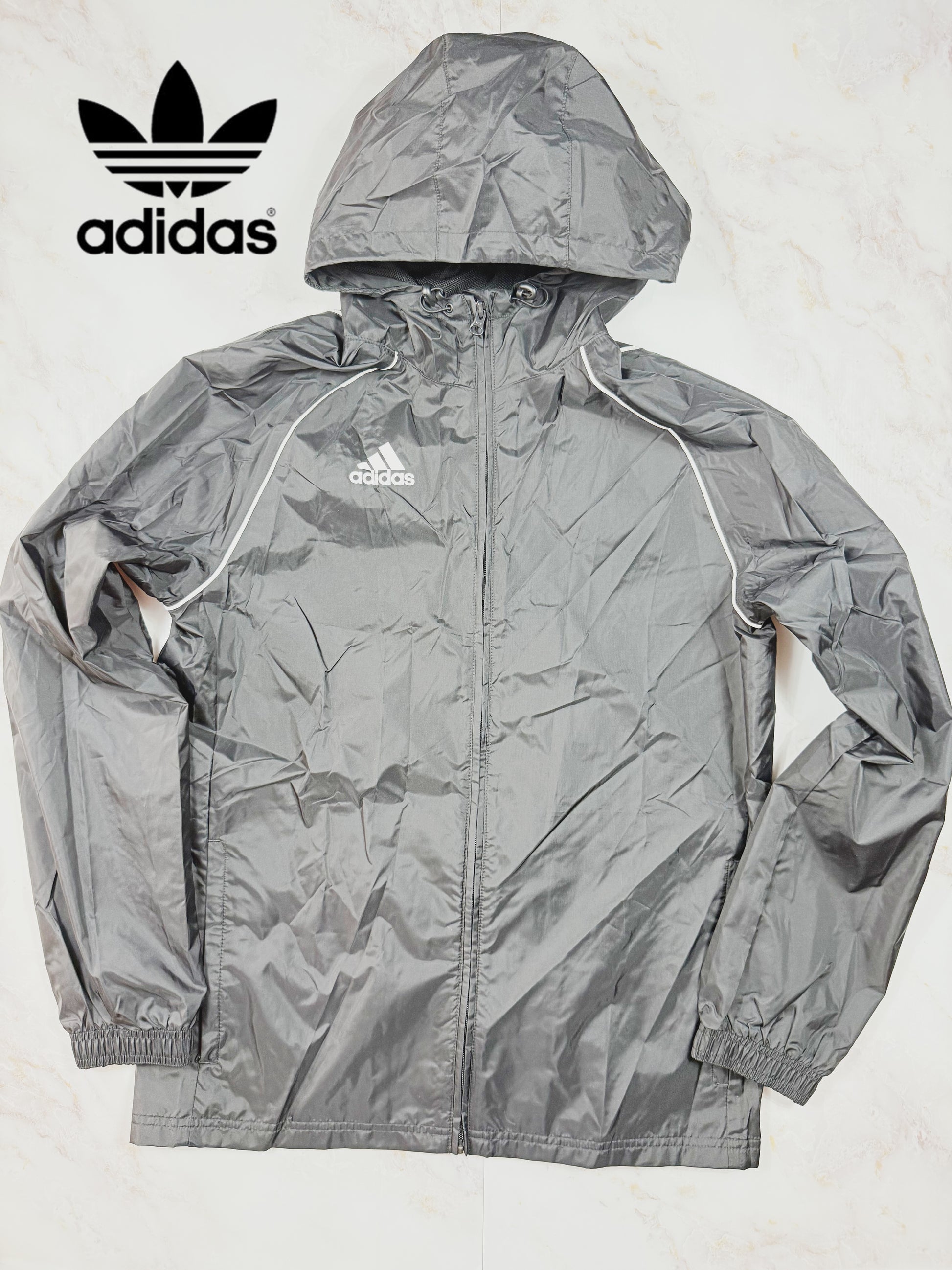 【adidas】フード付き ナイロンジャケット グレー Lサイズ相当 CORE18 RN JKT メンズ アディダス ウインドブレーカー