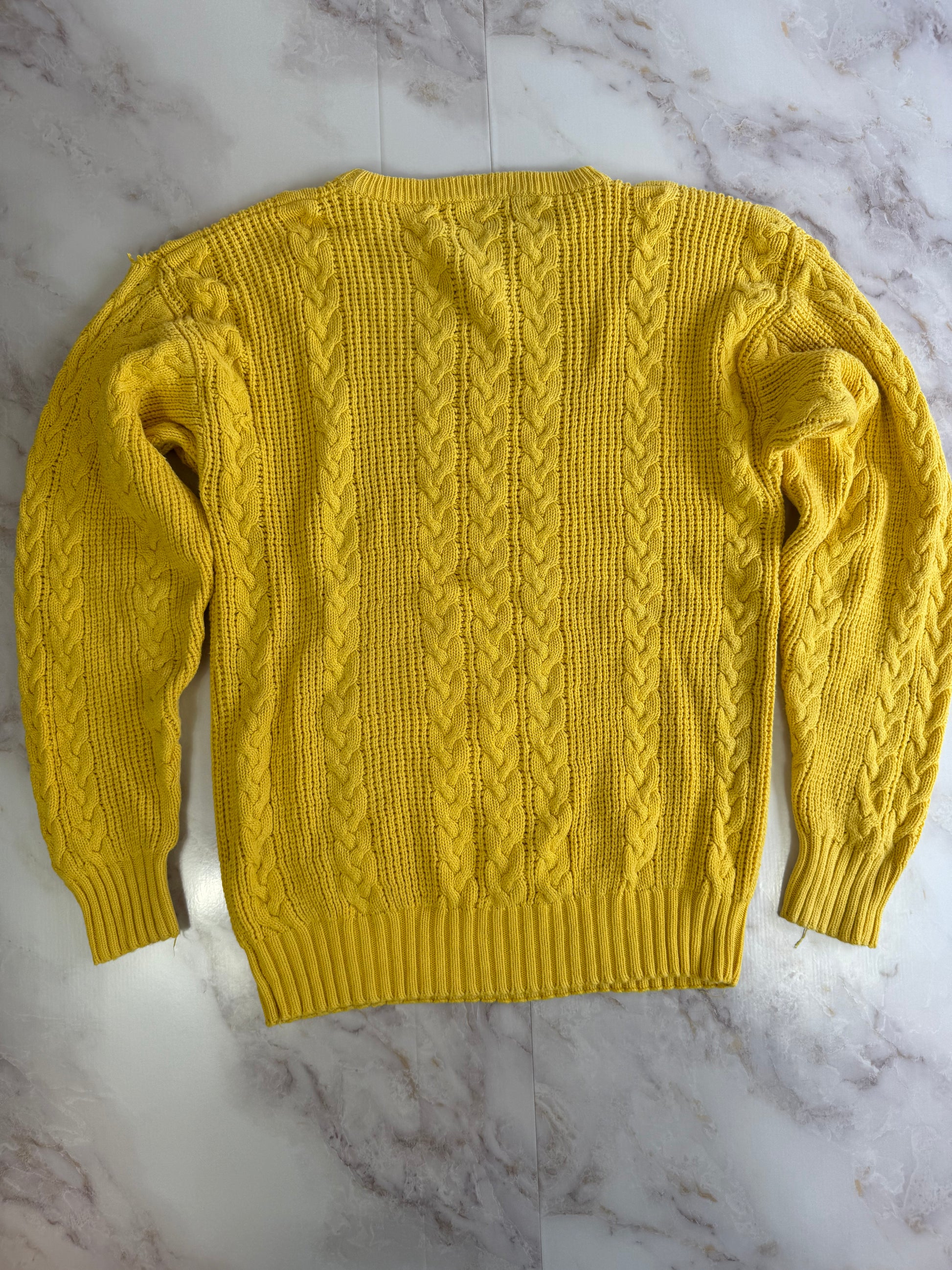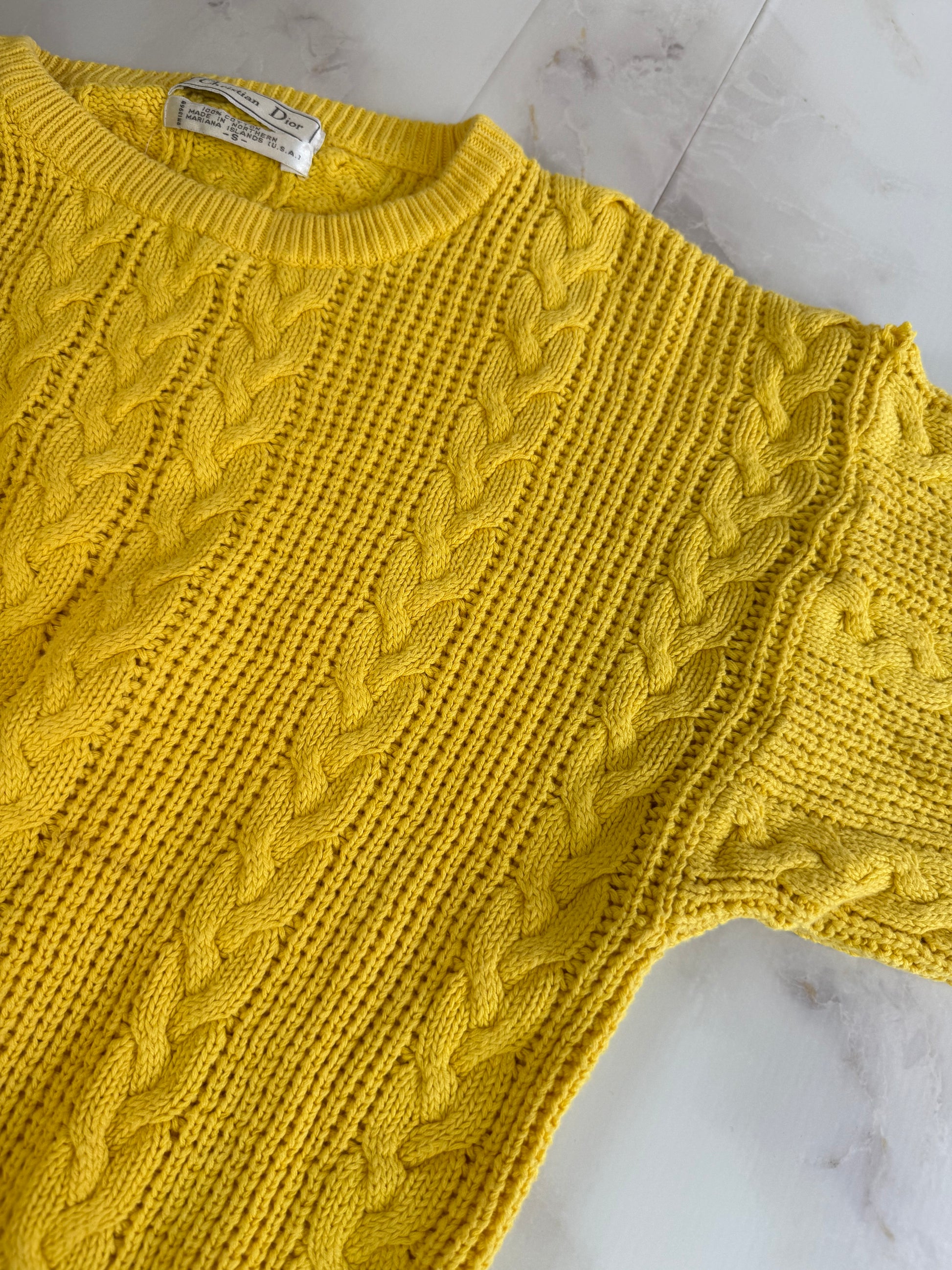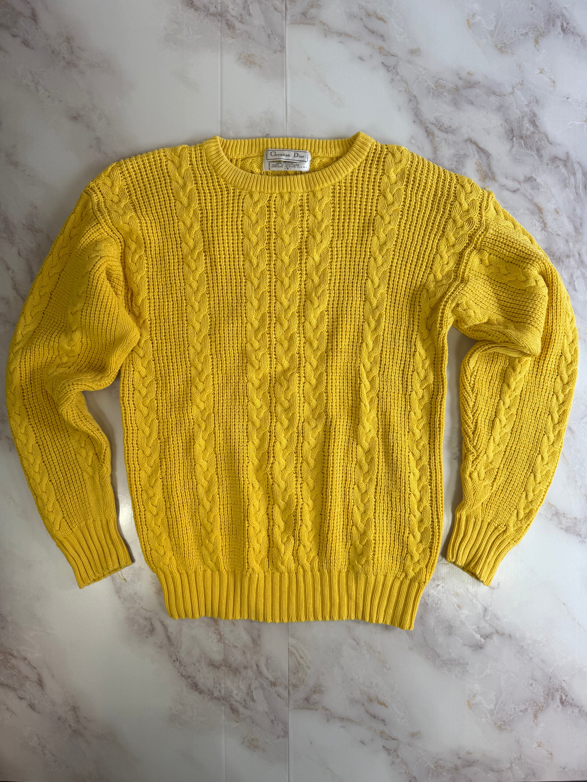 【Christian Dior】ヴィンテージ ケーブルニットセーター Sサイズ イエロー|ディオール古着 100%コットン
