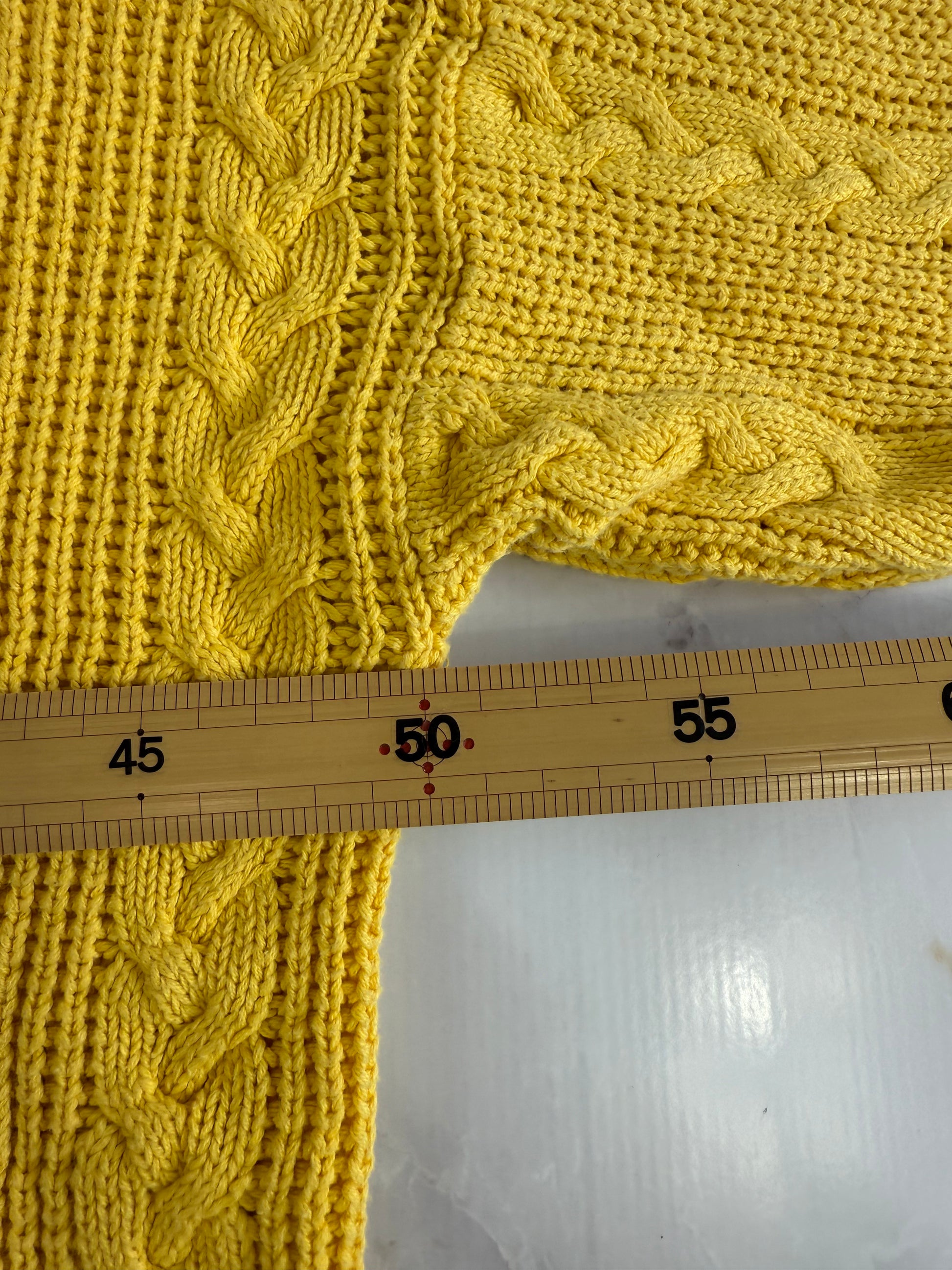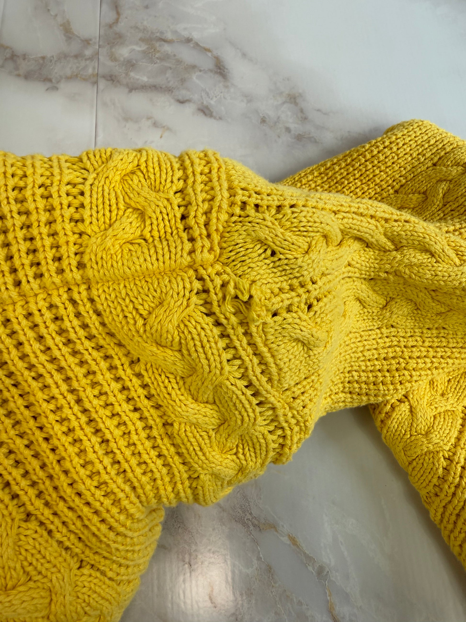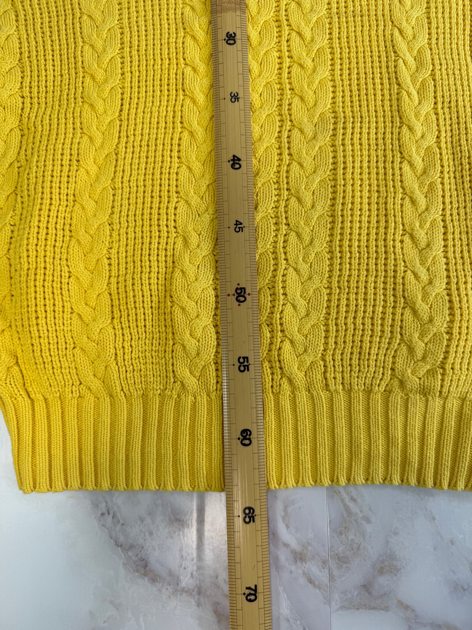 【Christian Dior】ヴィンテージ ケーブルニットセーター Sサイズ イエロー|ディオール古着 100%コットン