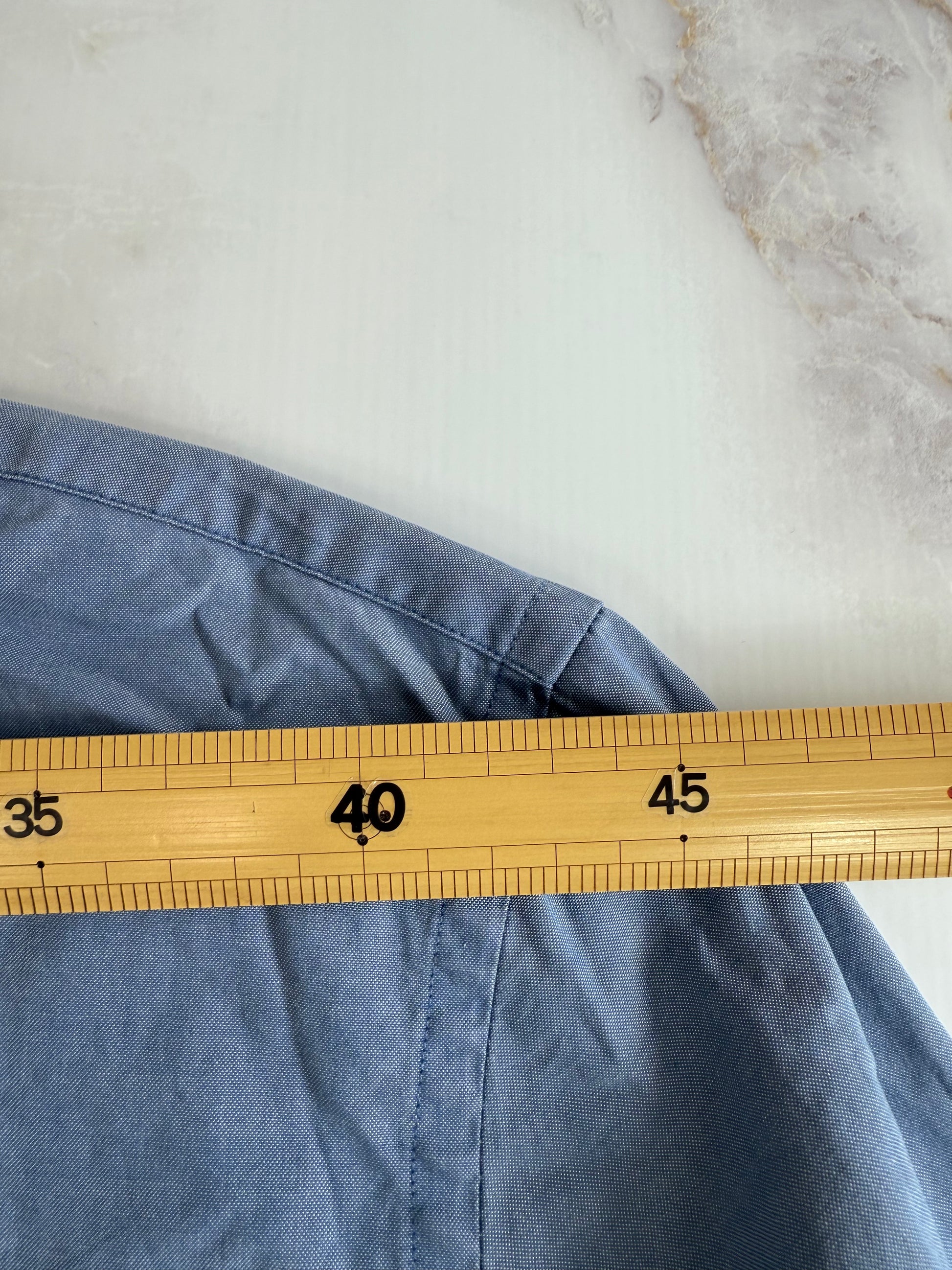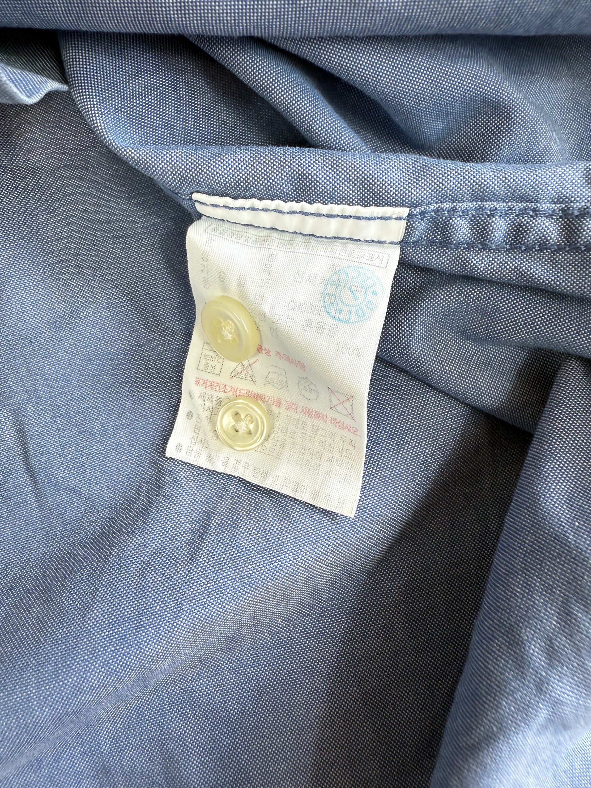 上品なブルーカラーと、胸元のアイコニックなワニロゴが映える、LACOSTE(ラコステ)のスリムフィットボタンダウンシャツです。