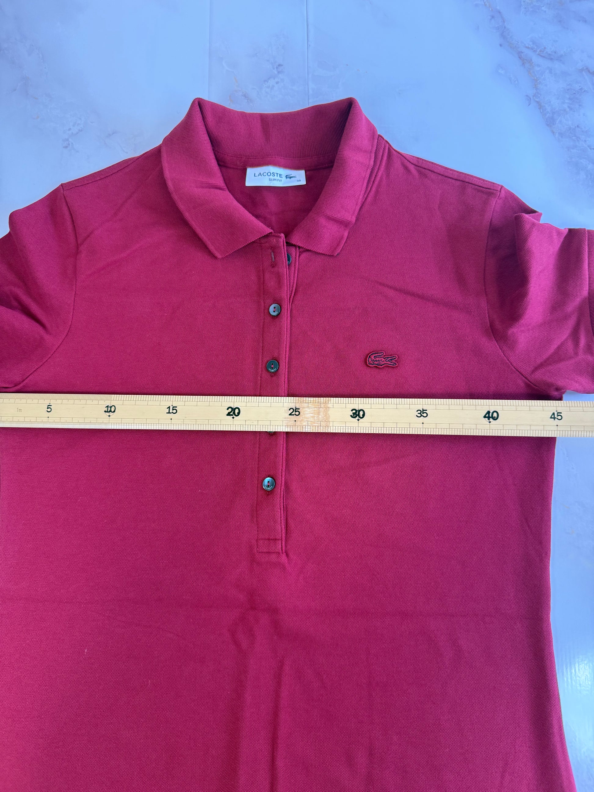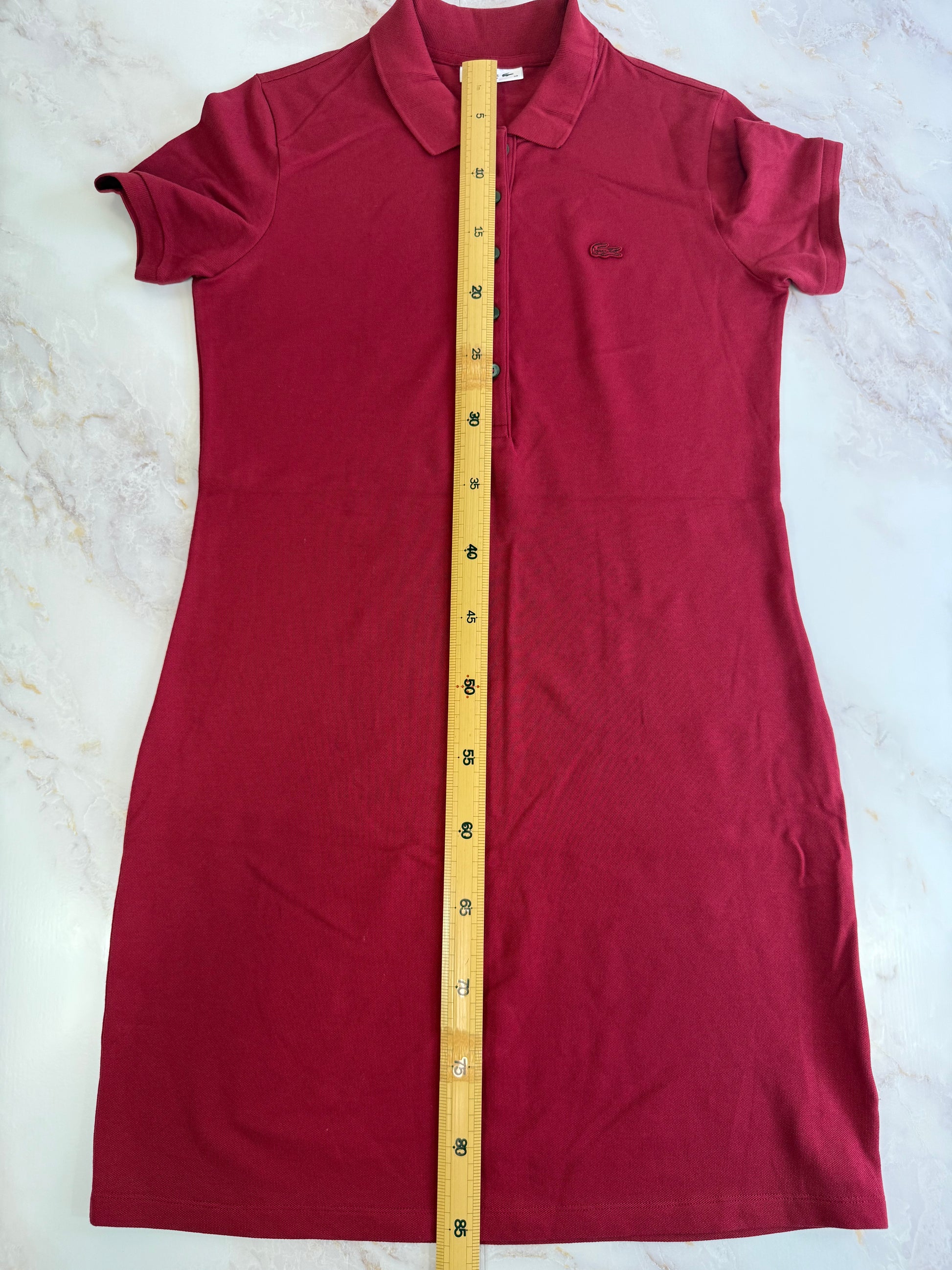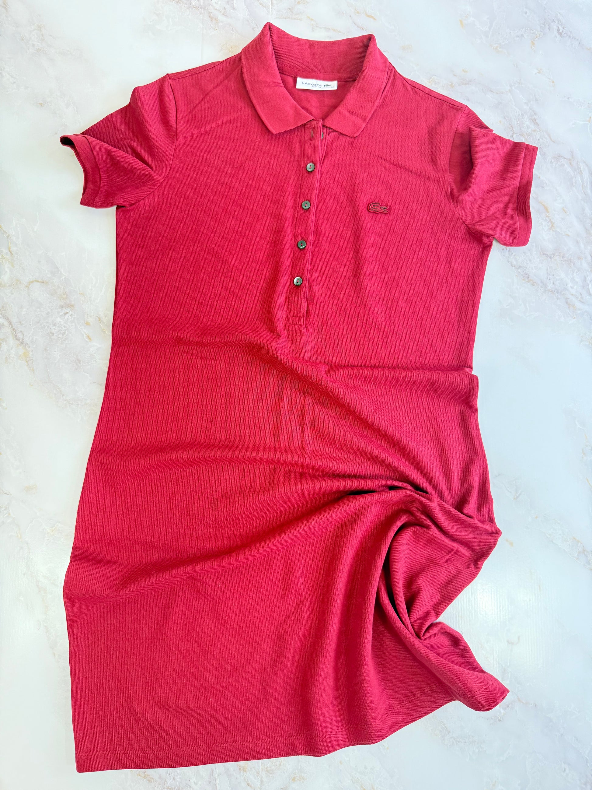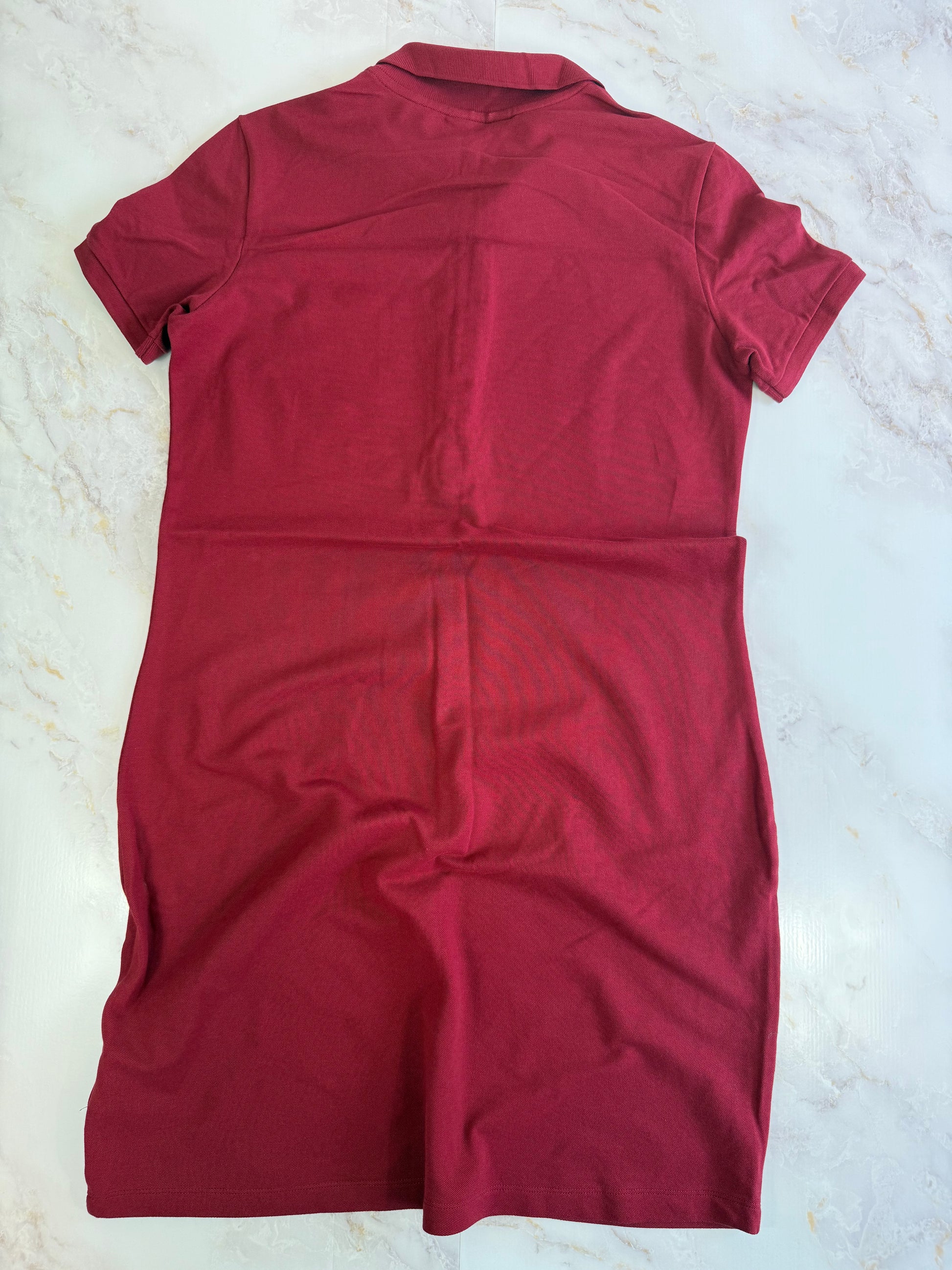 【LACOSTE】ラコステ レディース ポロシャツワンピース ボルドー 38サイズ L相当 コットンストレッチ 刺繍ロゴ入り