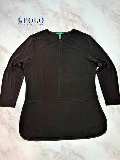 【LAUREN RALPH LAUREN】ブラック 長袖トップス Lサイズ | シンプル&エレガント デイリーからオフィスまで