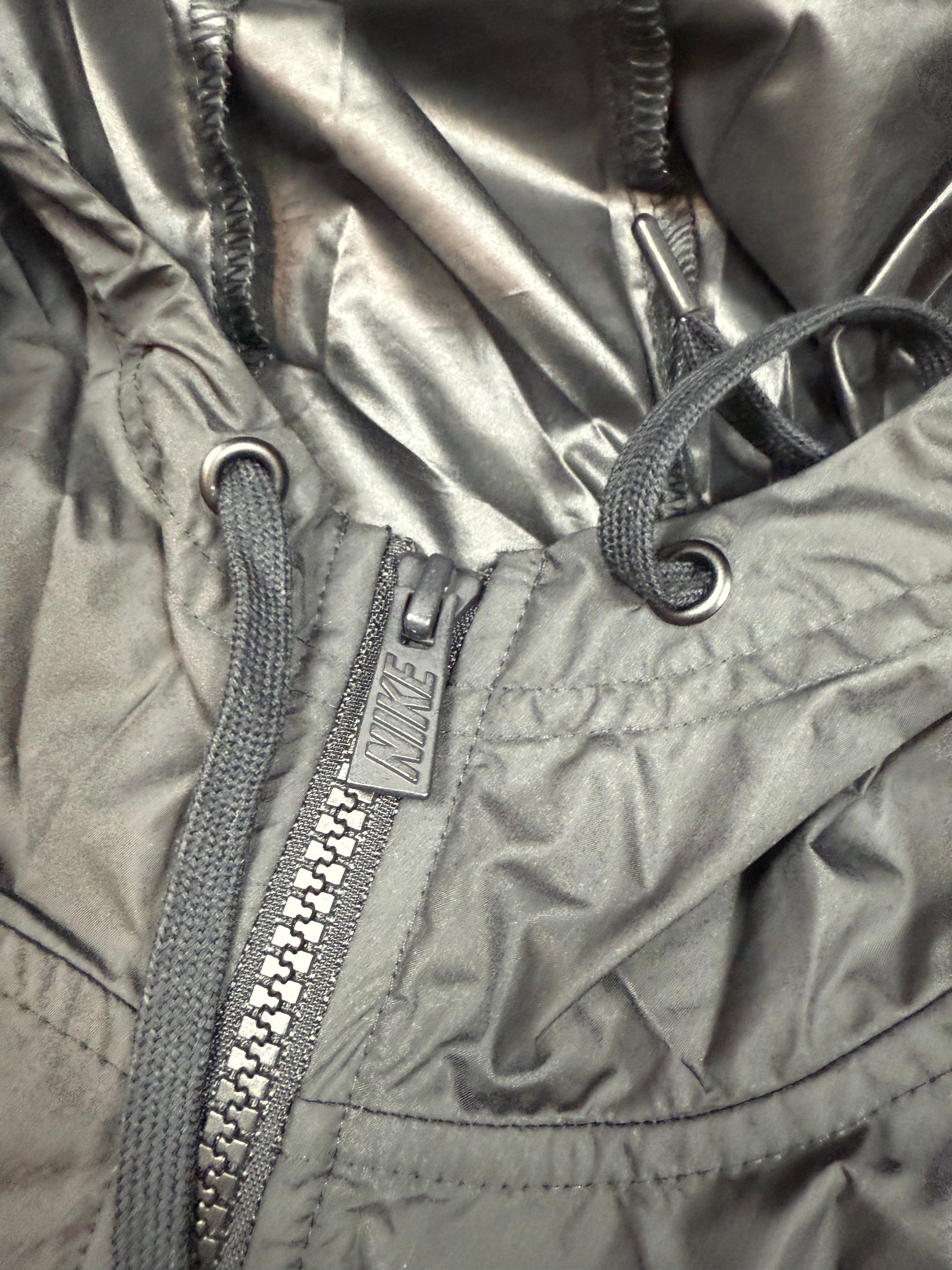 NIKE(ナイキ)のブラックウィンドブレーカー。シンプルなモノトーンデザインにホワイトのスウッシュロゴが映える、定番の1着です。