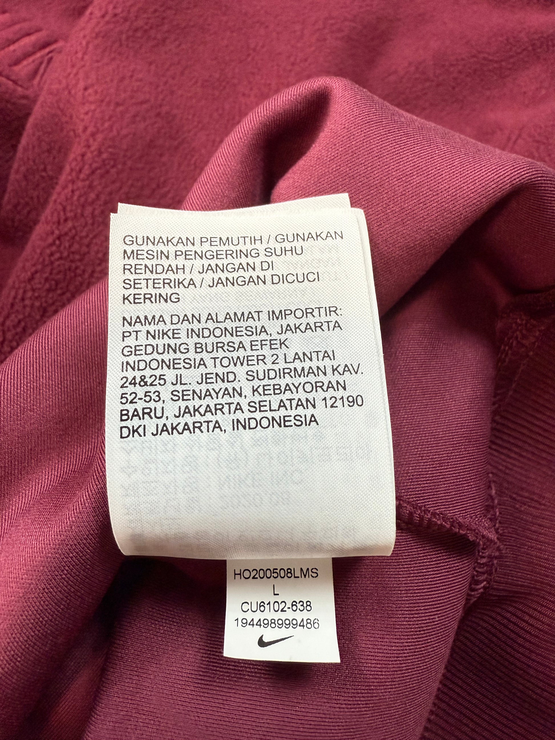 NIKE(ナイキ)Dri-FIT クルーネック スウェット トレーナー ボルドー Lサイズ