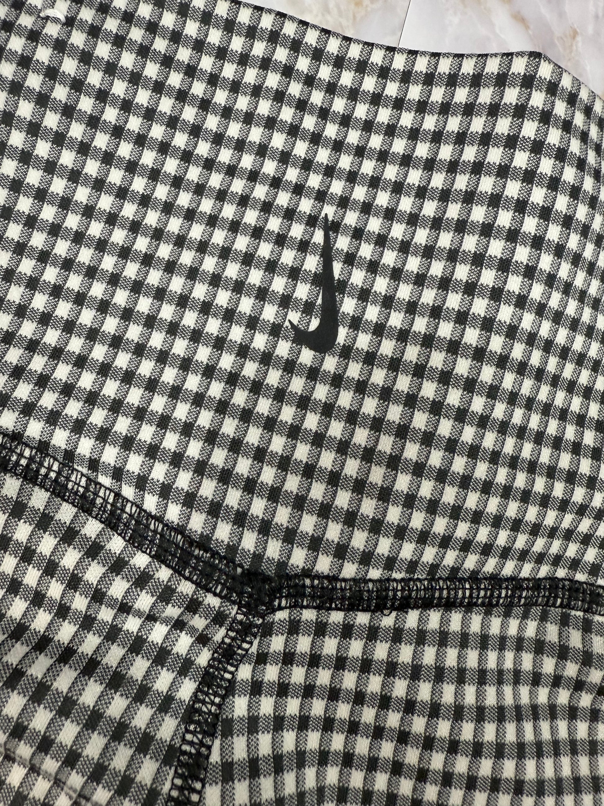 NIKE ナイキ Dri-FIT レギンス チェック柄 ブラックホワイト Mサイズ 吸汗速乾 スポーツウェア ヨガ フィットネス