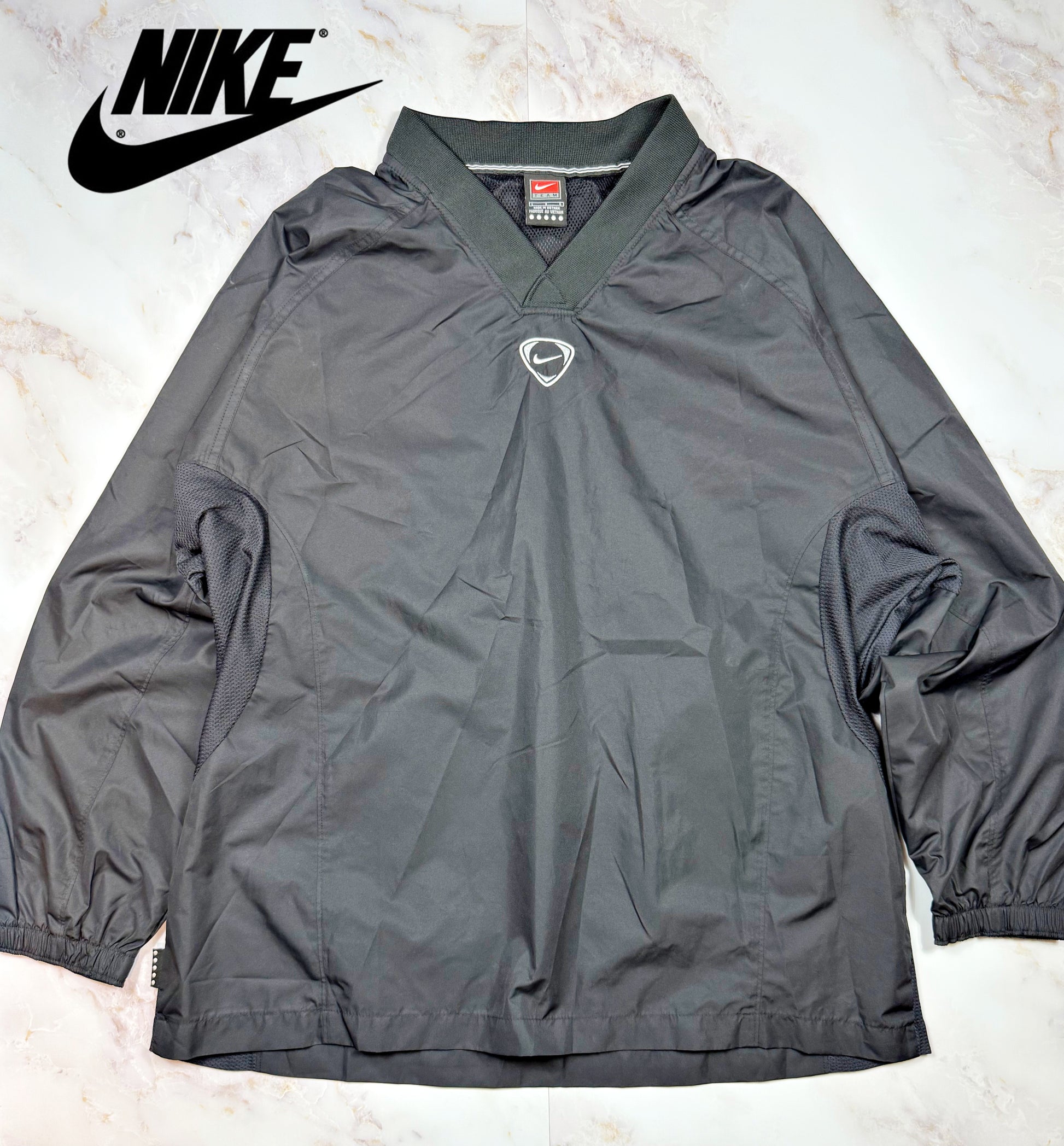 【NIKE】ナイキ Vネック プルオーバー ブラック ナイロンジャケット風 メンズ Lサイズ ベトナム製