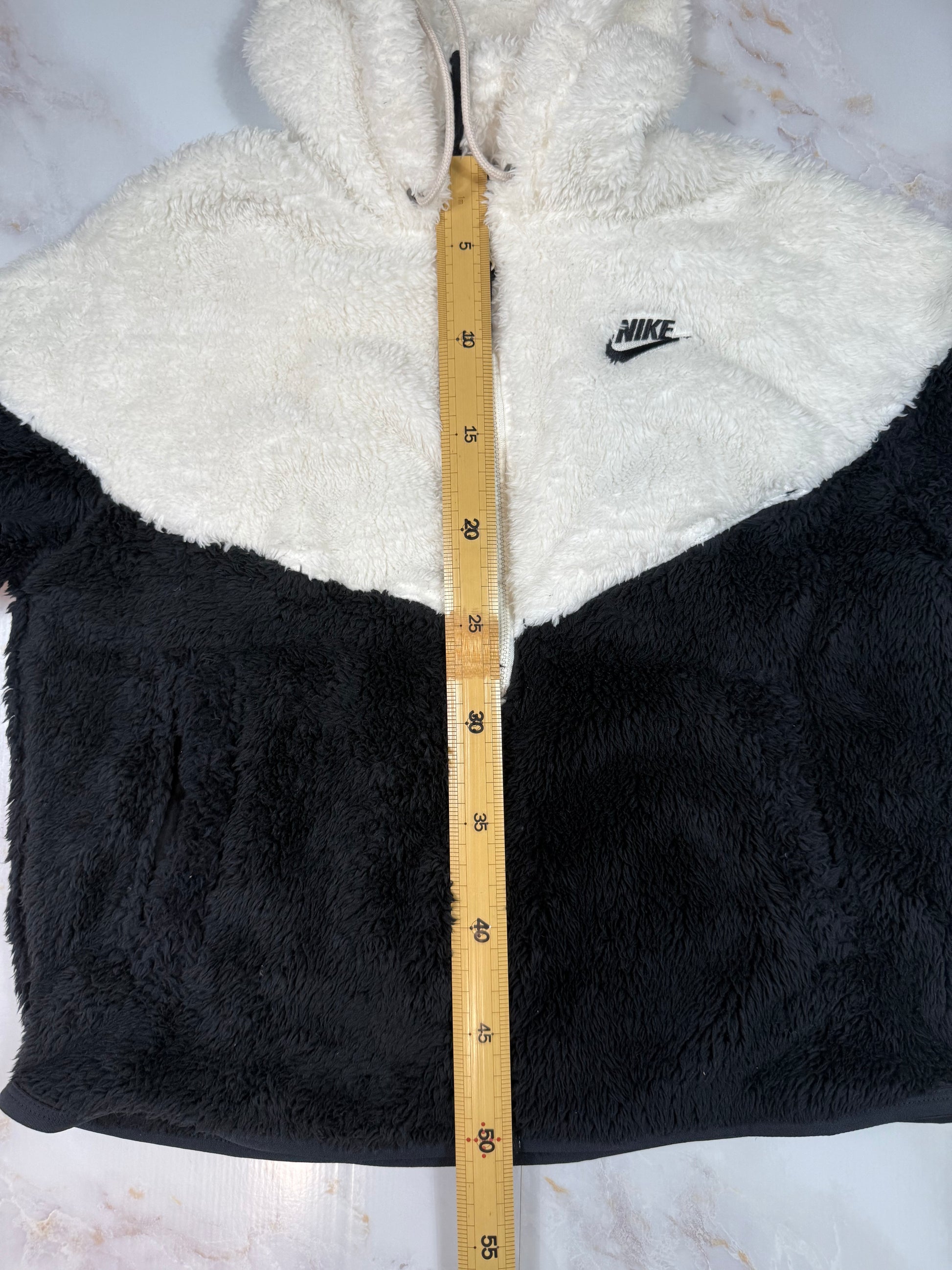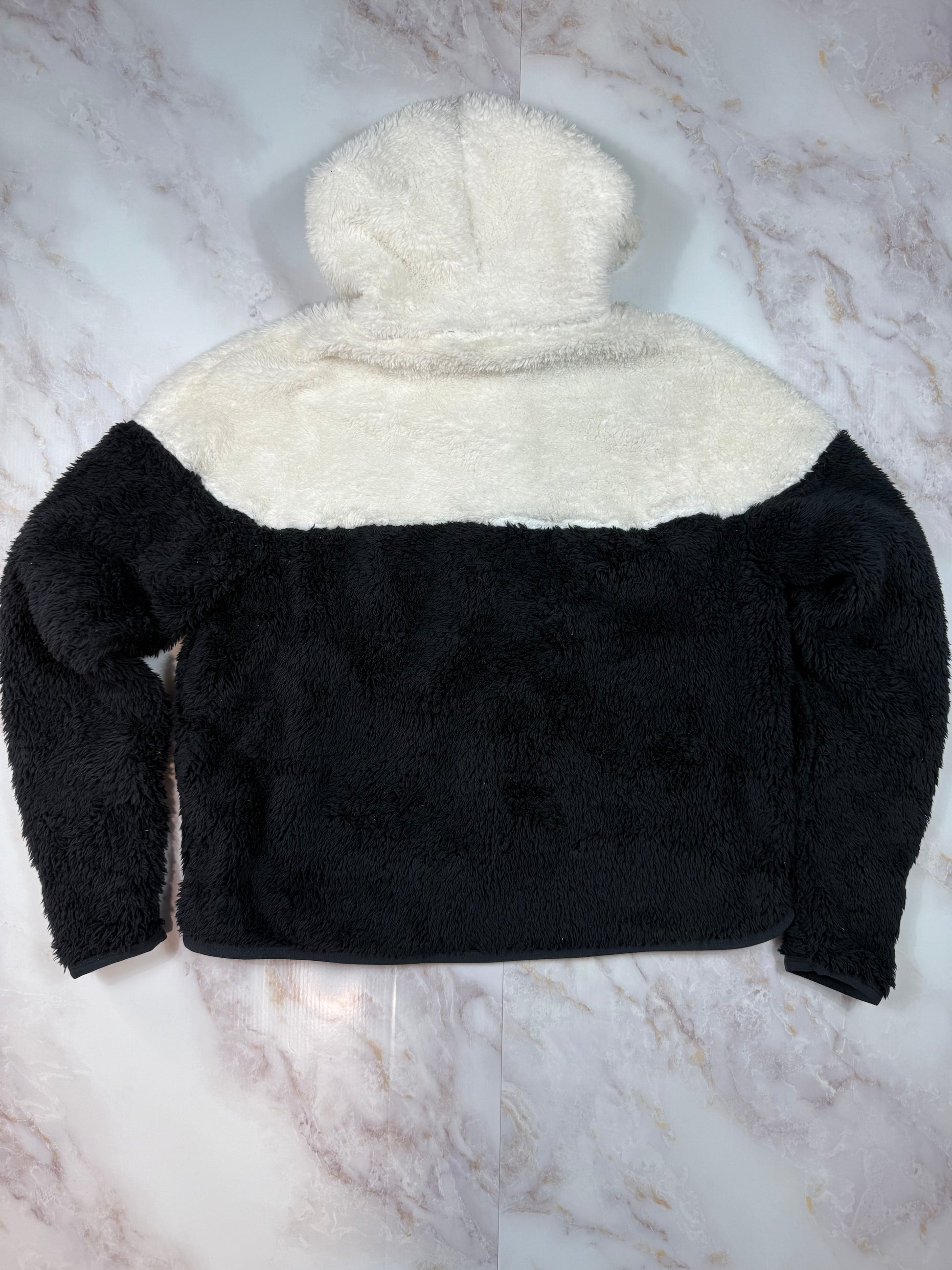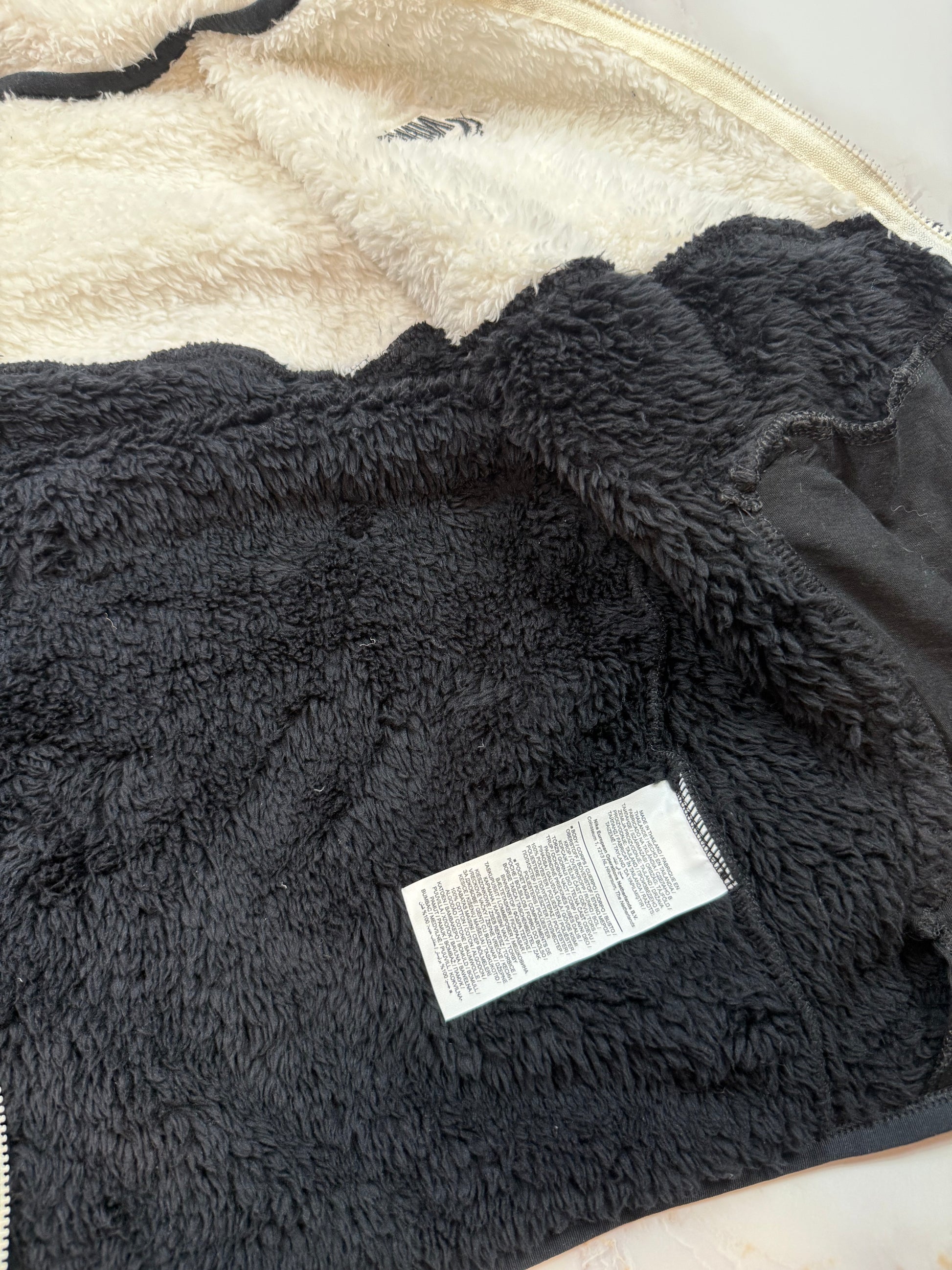 【NIKE】ボア フリース フルジップ パーカー フーディー XSサイズ ブラック×ホワイト 刺繍ロゴ
