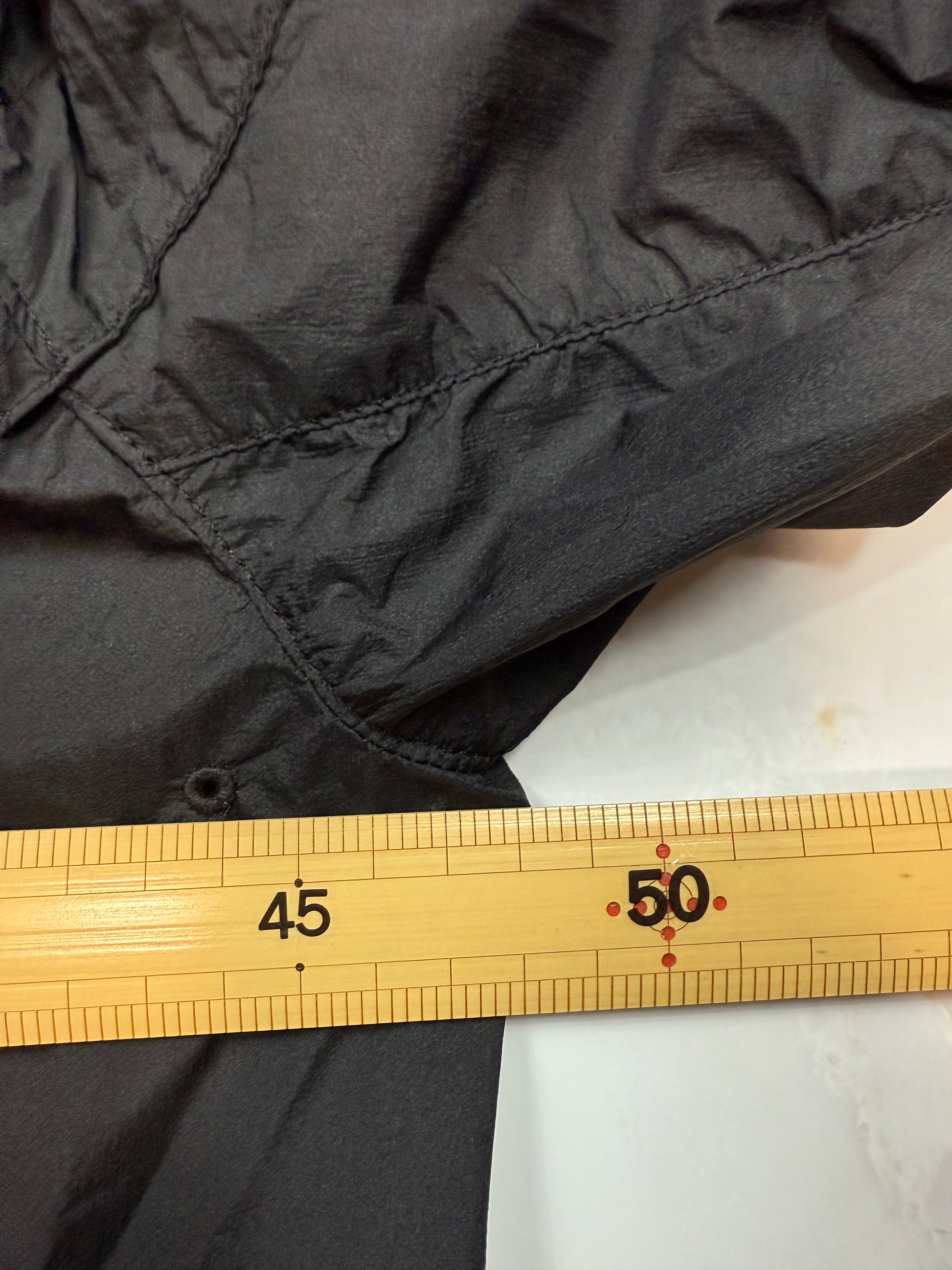 軽量かつ高い耐水性・防風性を兼ね備えたナイロン素材を使用し、機能性とデザイン性を両立。胸元にはNIKEロゴ、袖にはストーンアイランドのコンパスパッチが付き、存在感ある一着です。