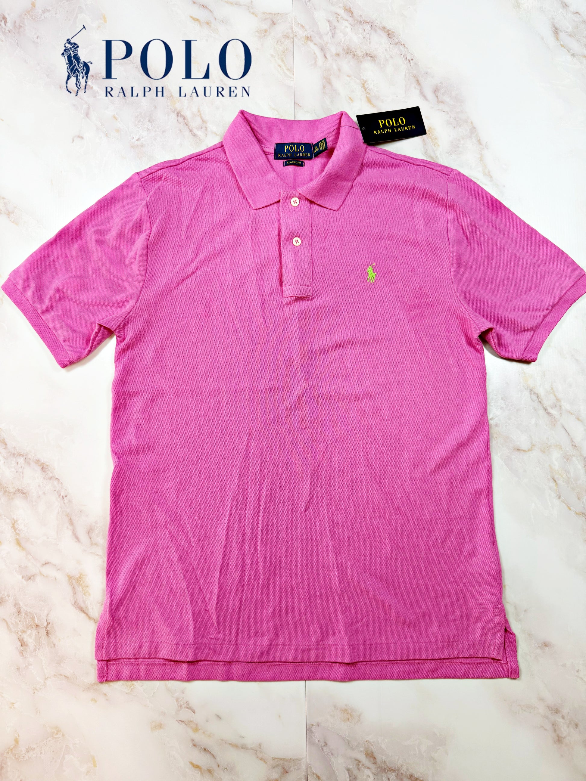 【POLO RALPH LAUREN】クラシックフィット ポロシャツ ピンク × グリーンポニー刺繍 メンズL 鹿の子 半袖 カジュアル 定番