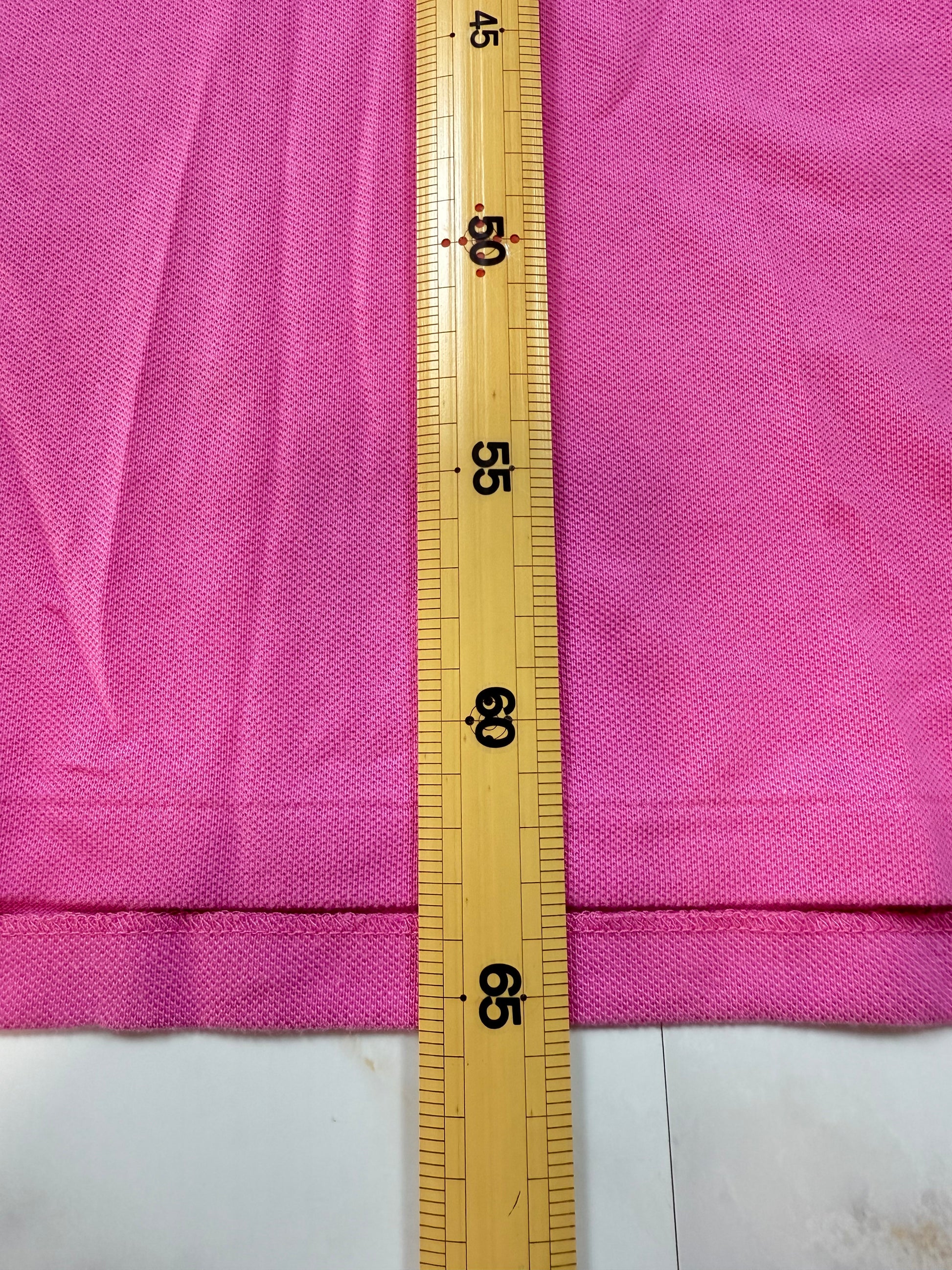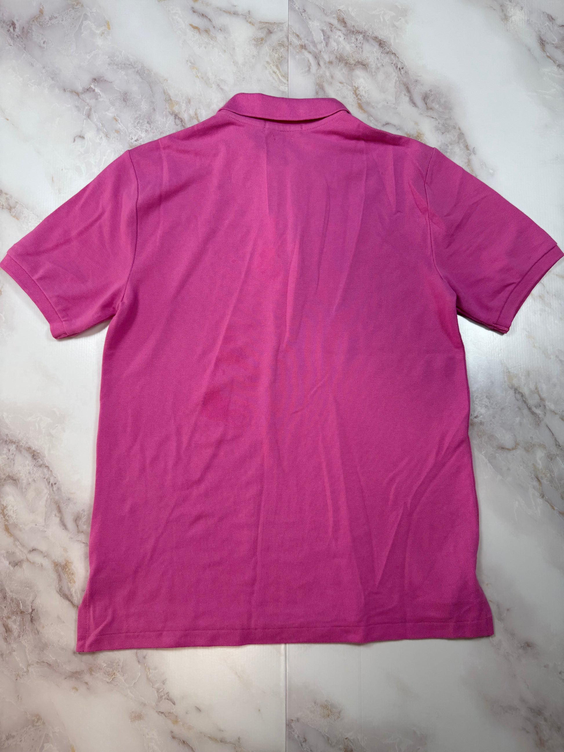 鮮やかなピンクにブランドを象徴するグリーンのポニー刺繍がアクセントになった人気の定番アイテムです。鹿の子素材ならではの快適な着心地で、タウンユースからゴルフやアウトドアシーンまで幅広く活躍します。