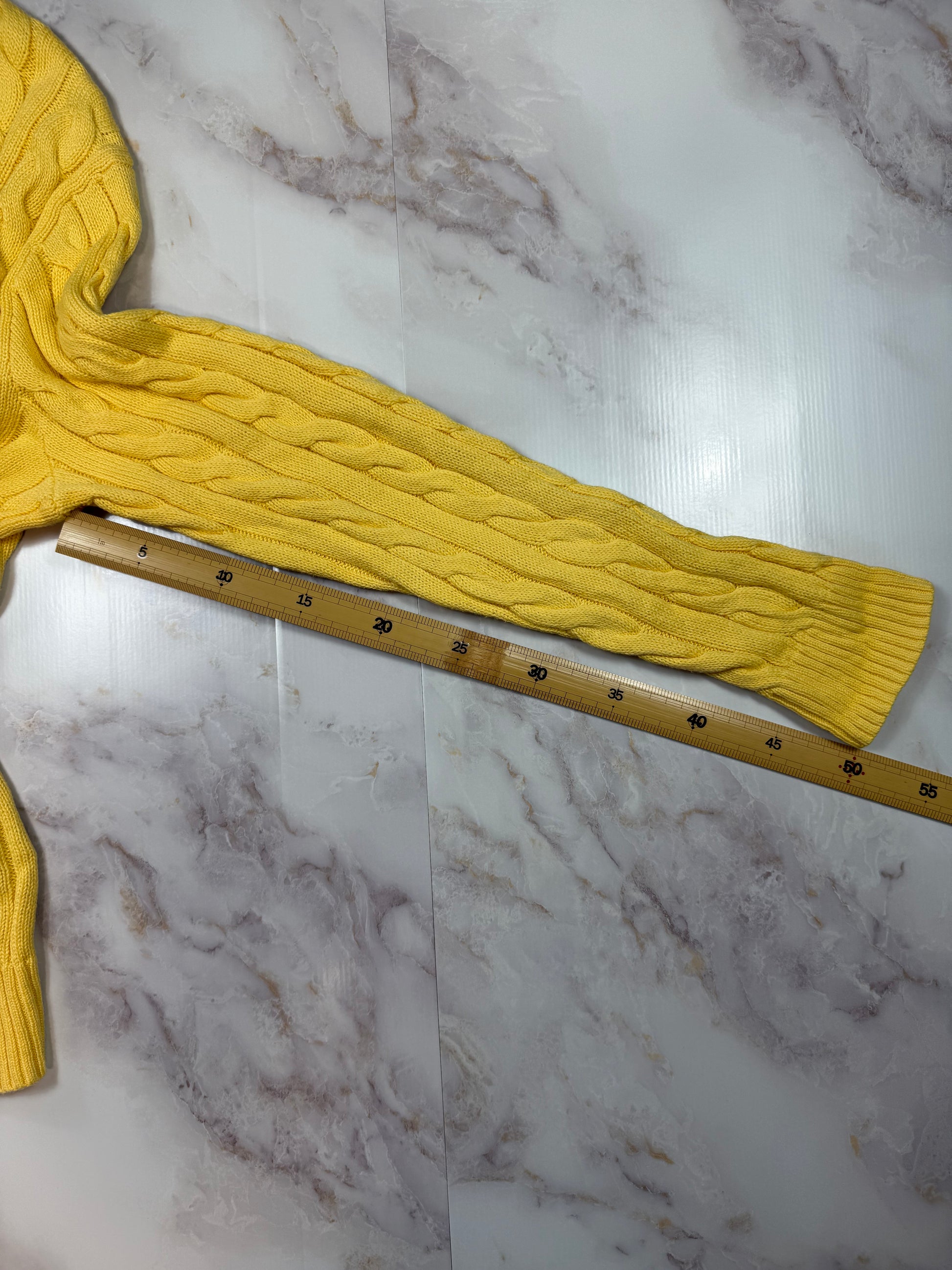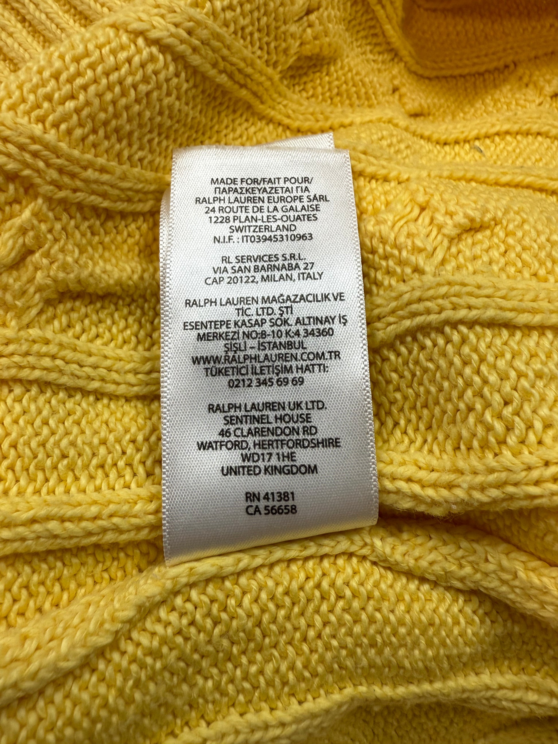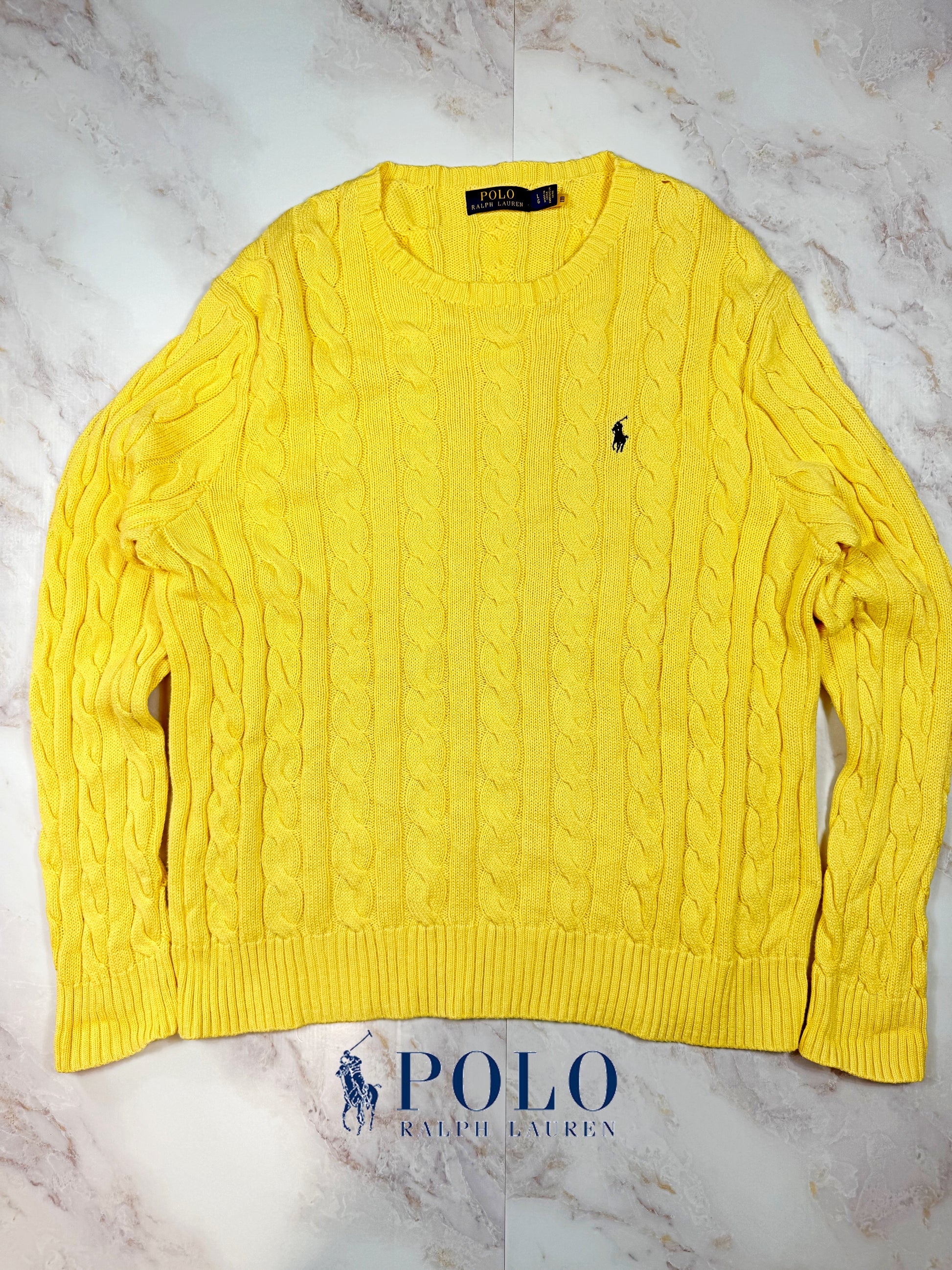 鮮やかなイエローが目を惹く、POLO RALPH LAURENの定番ケーブル編みコットンニットです。