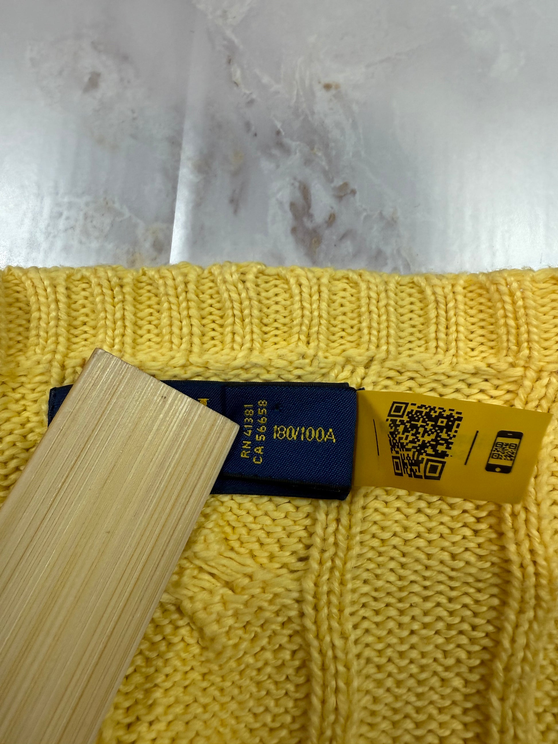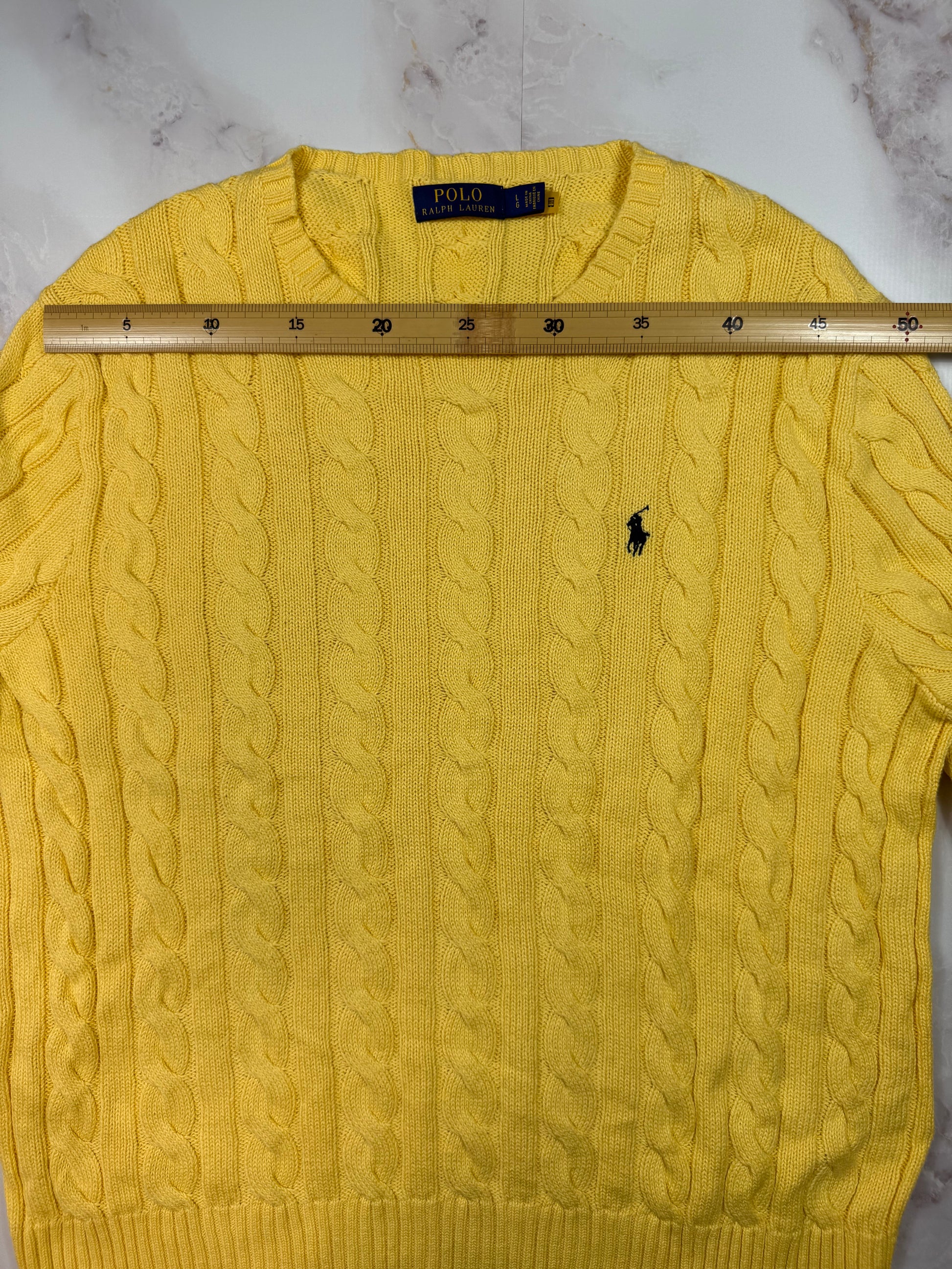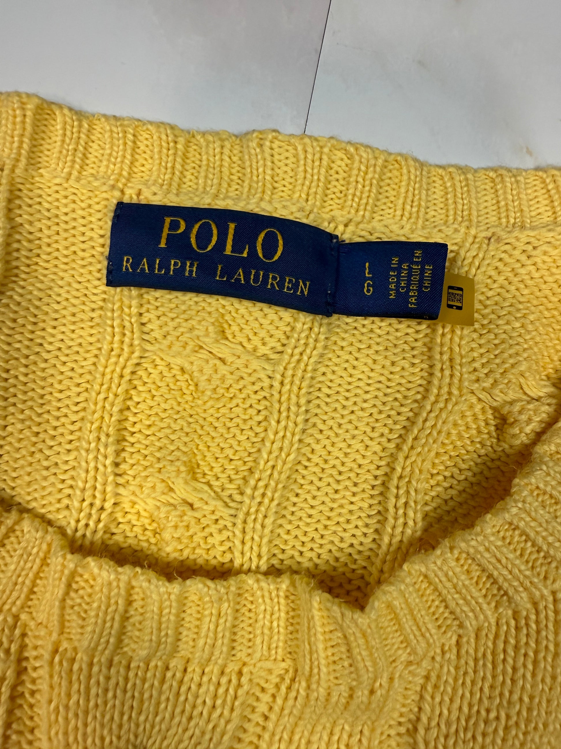 【POLO RALPH LAUREN】ケーブルニット セーター イエロー コットン100% メンズL 大人気ポロラルフローレン