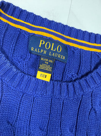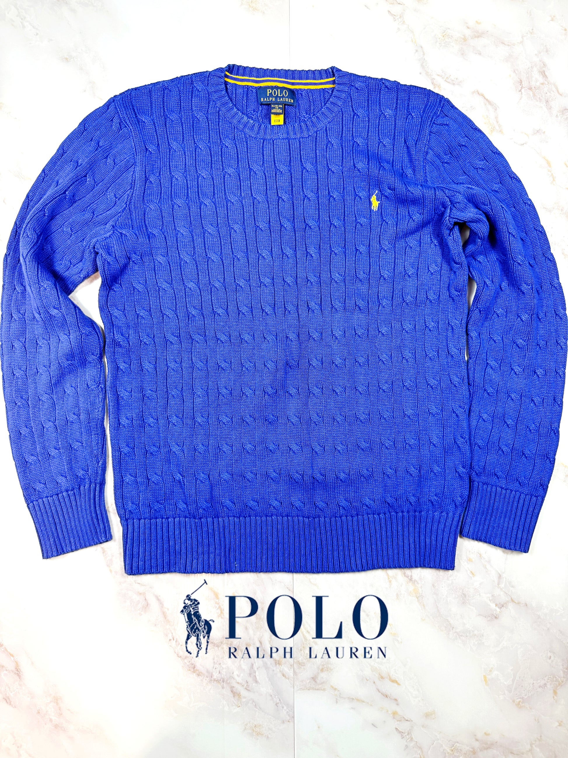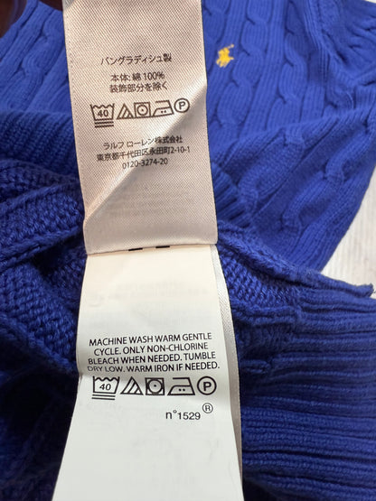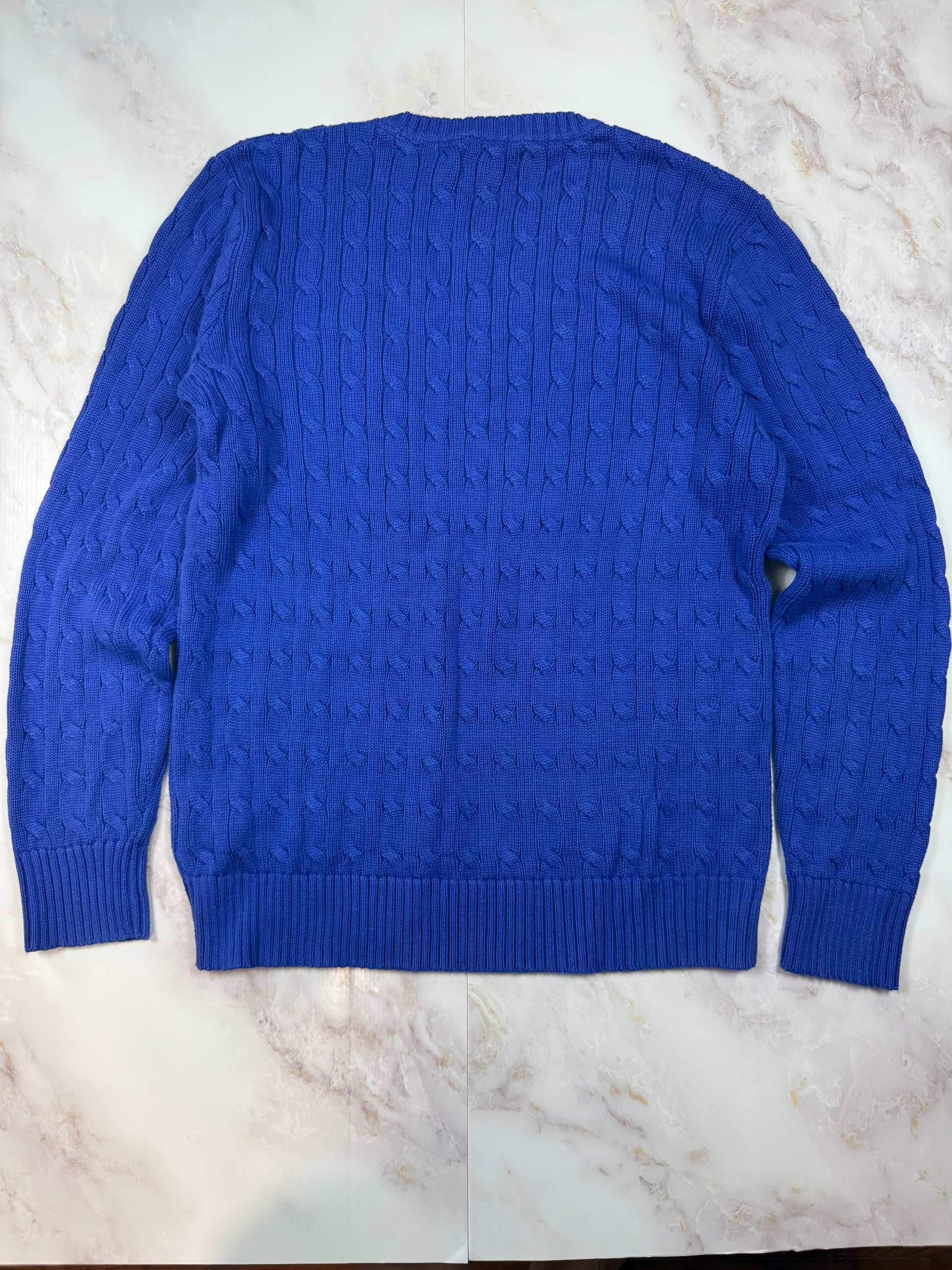 【POLO RALPH LAUREN】ケーブルニット セーター 青色 メンズLサイズ コットン100% クラシックフィット クルーネック ニットトップス