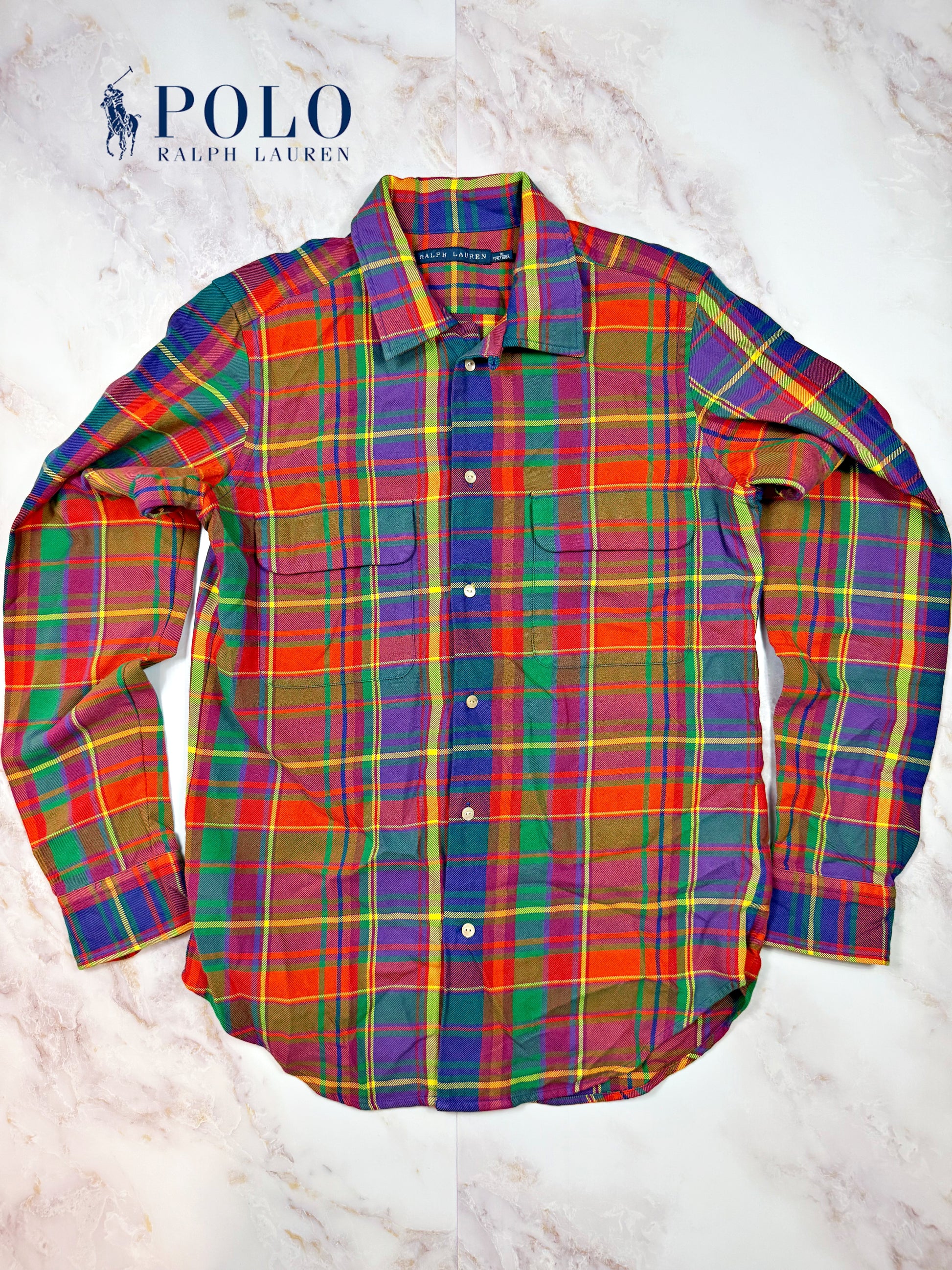 POLO RALPH LAUREN マルチカラー チェックシャツ 長袖 コットン100% エルボーパッチ付き メンズ