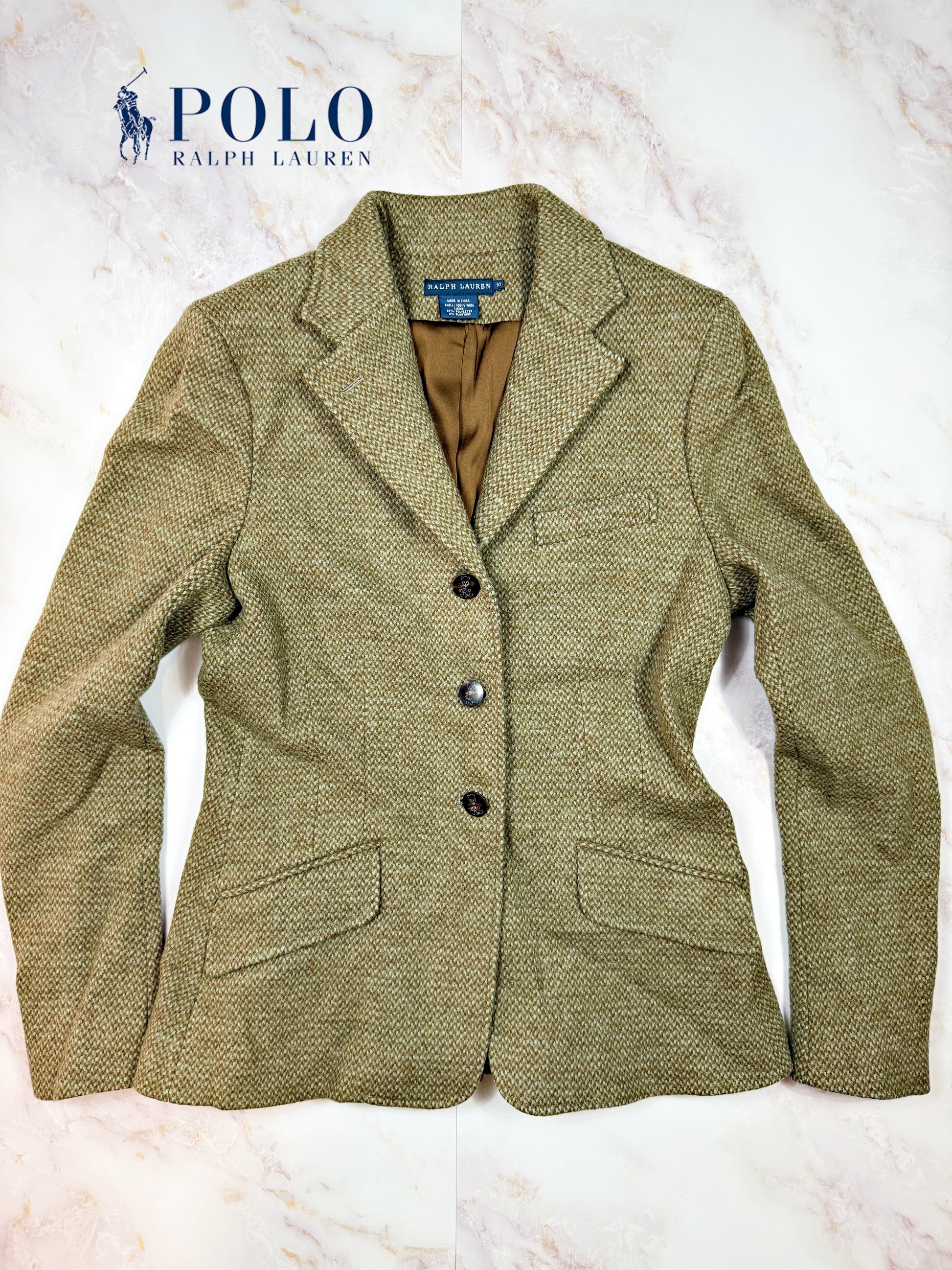 【RALPH LAUREN】ラルフローレン ウール テーラードジャケット ブラウン×グリーン チェック調 レディース サイズ10
