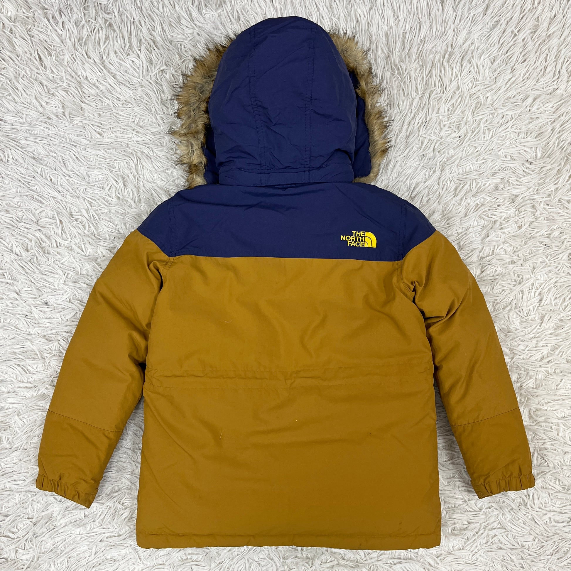 THE NORTH FACE(ザ・ノースフェイス)のキッズ用ダウンジャケットです。 人気のマスタードカラーとネイビーのバイカラーデザイン。