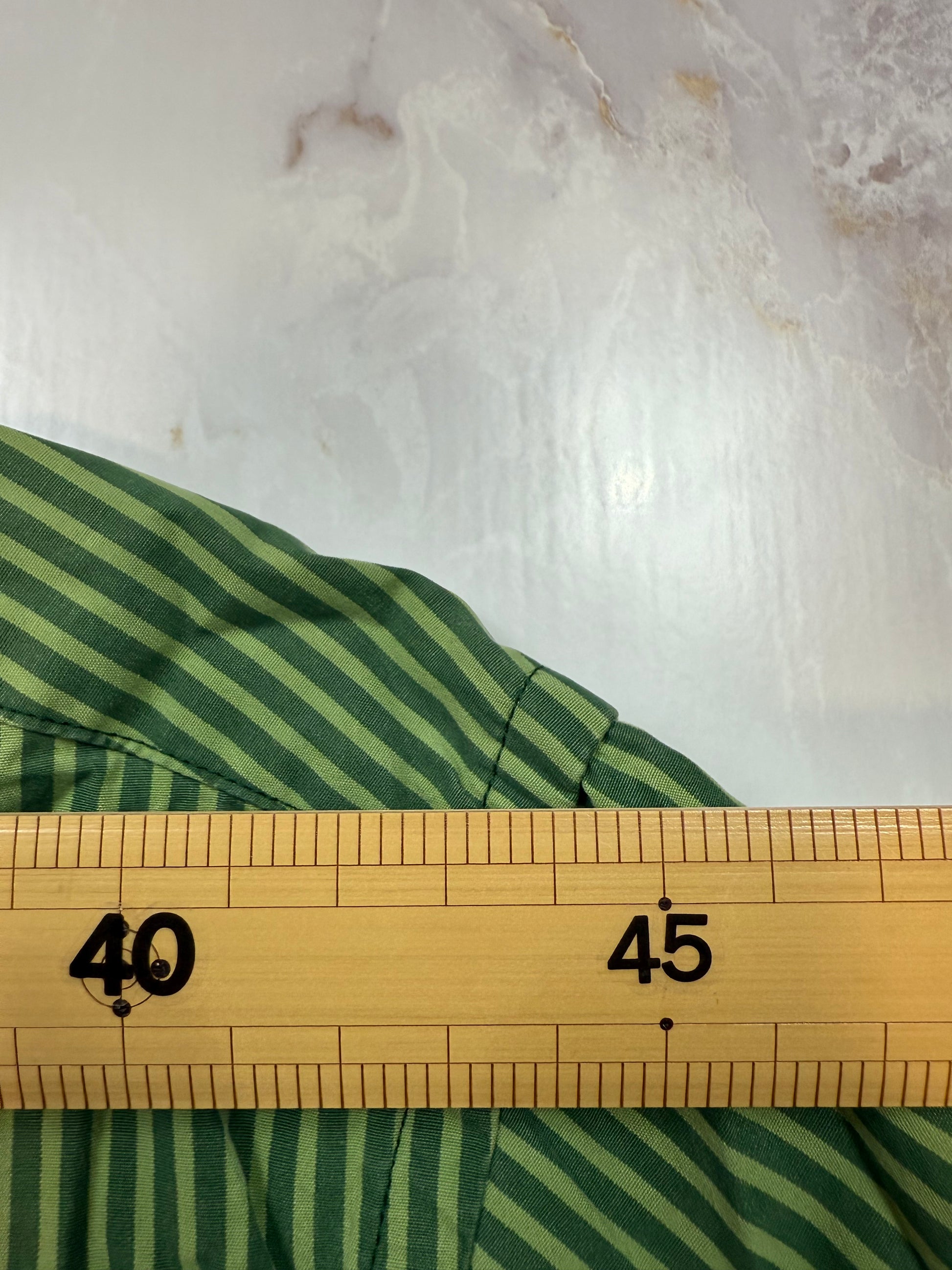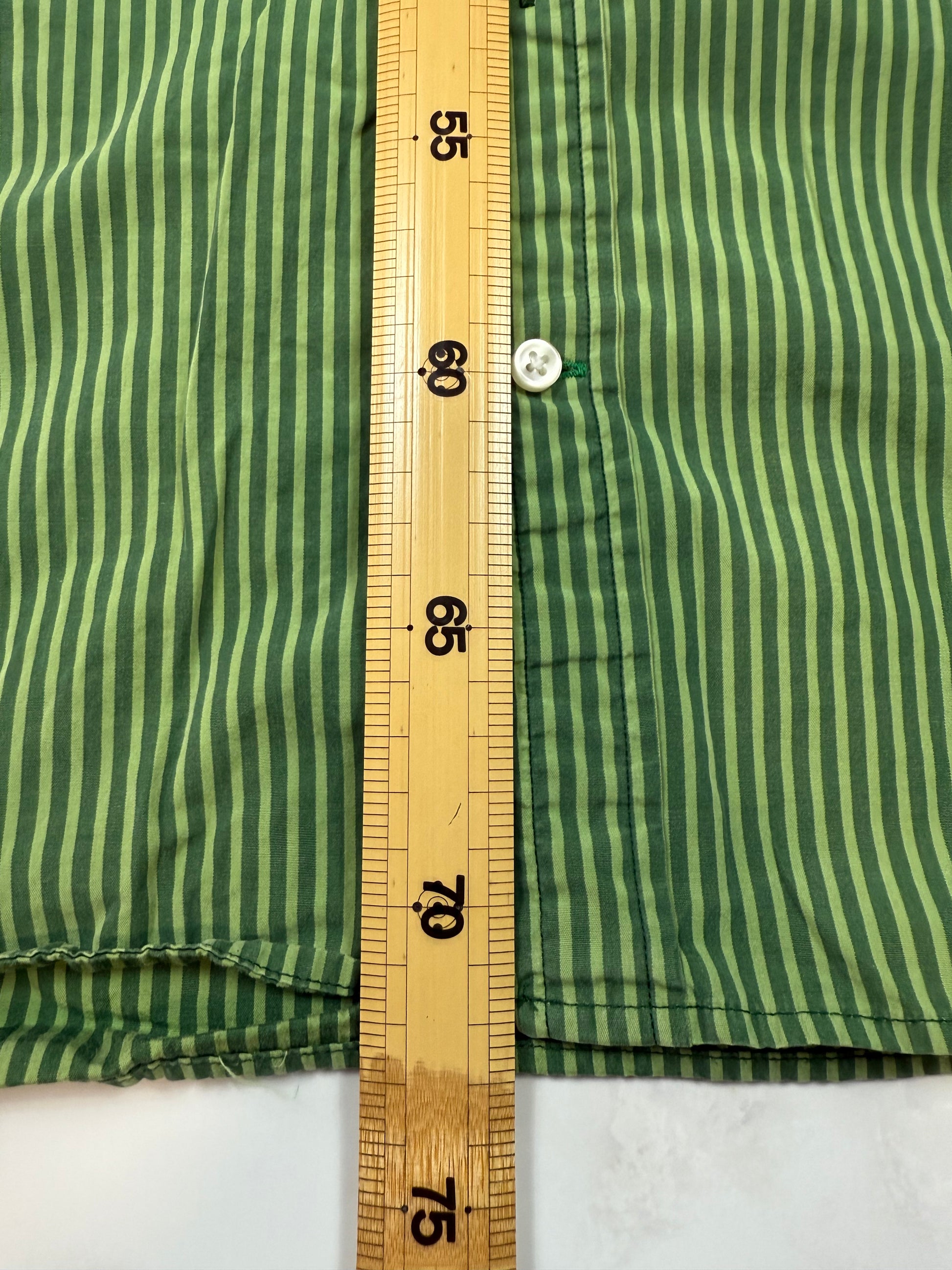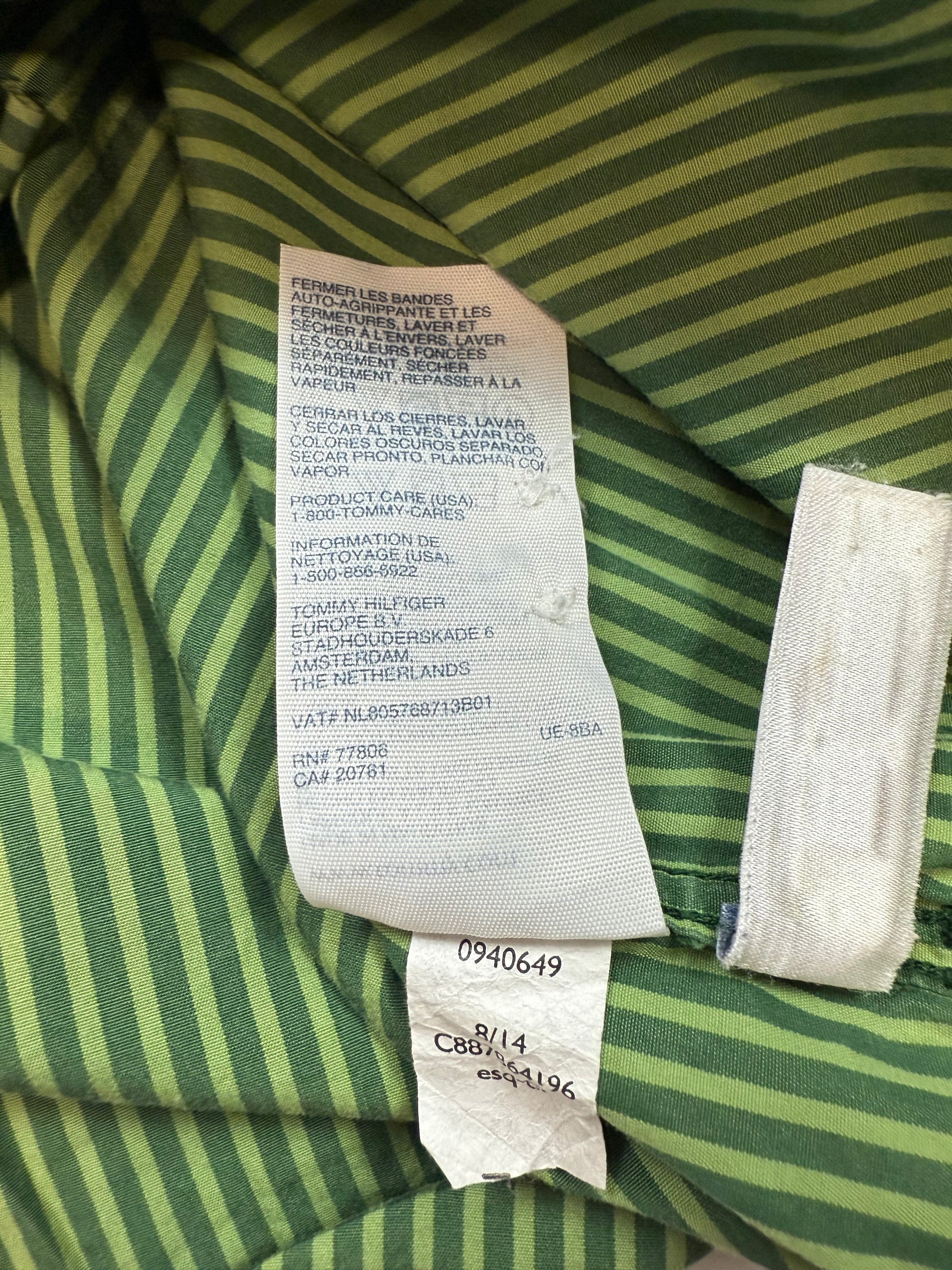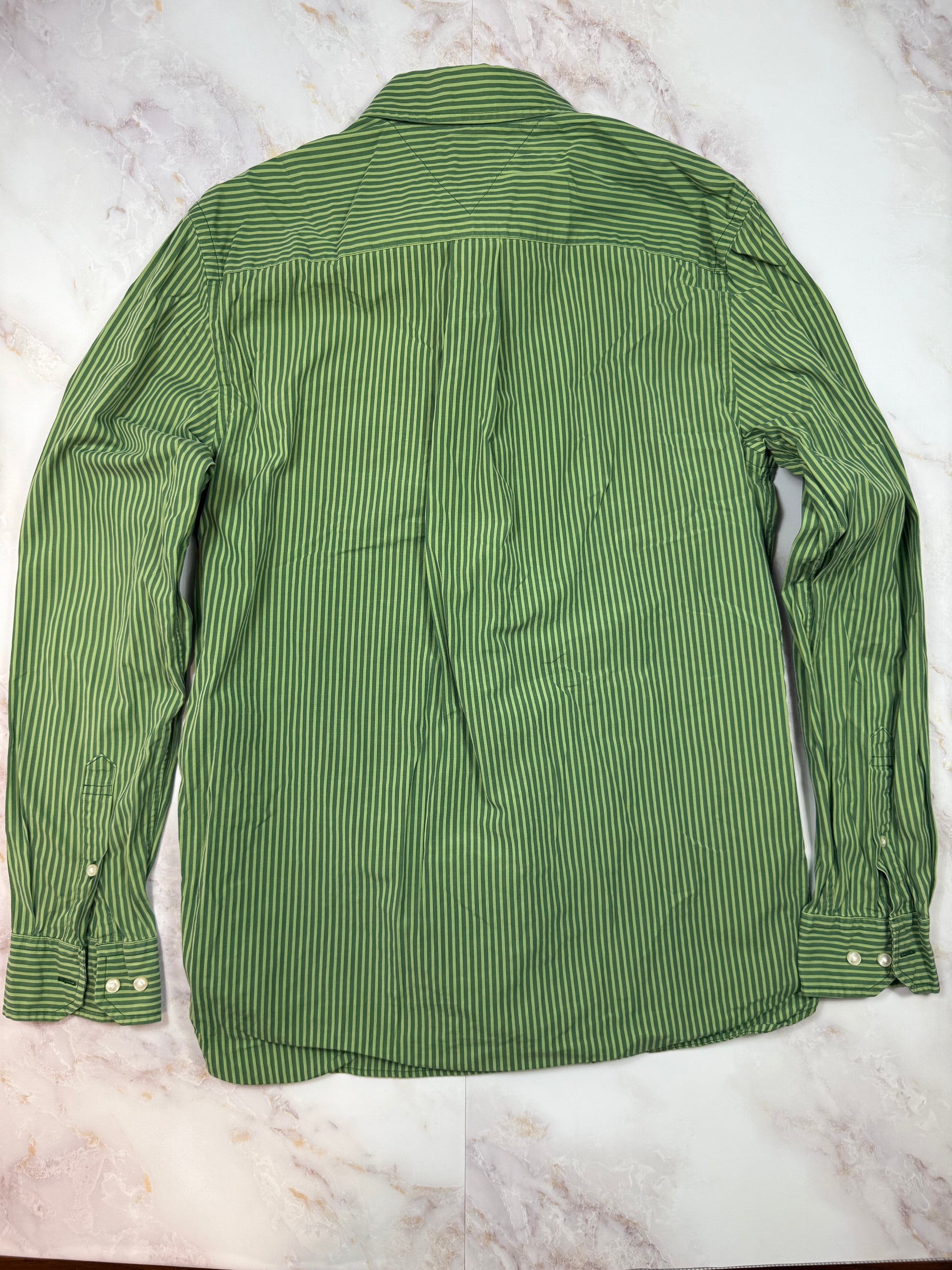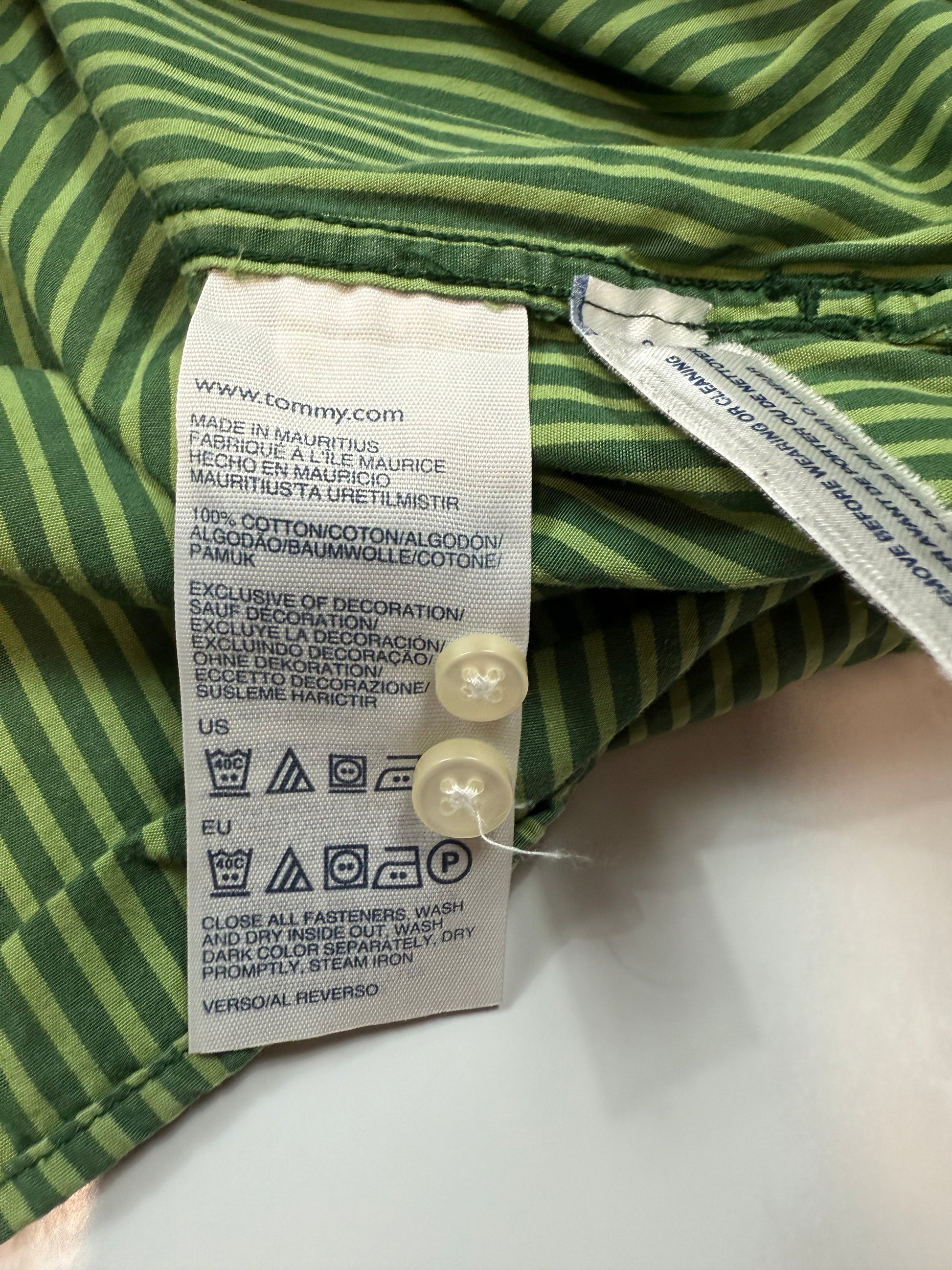 【TOMMY HILFIGER】トミーヒルフィガー グリーンストライプ シャツ メンズ M カスタムフィット 長袖 ボタンダウン コットン100%