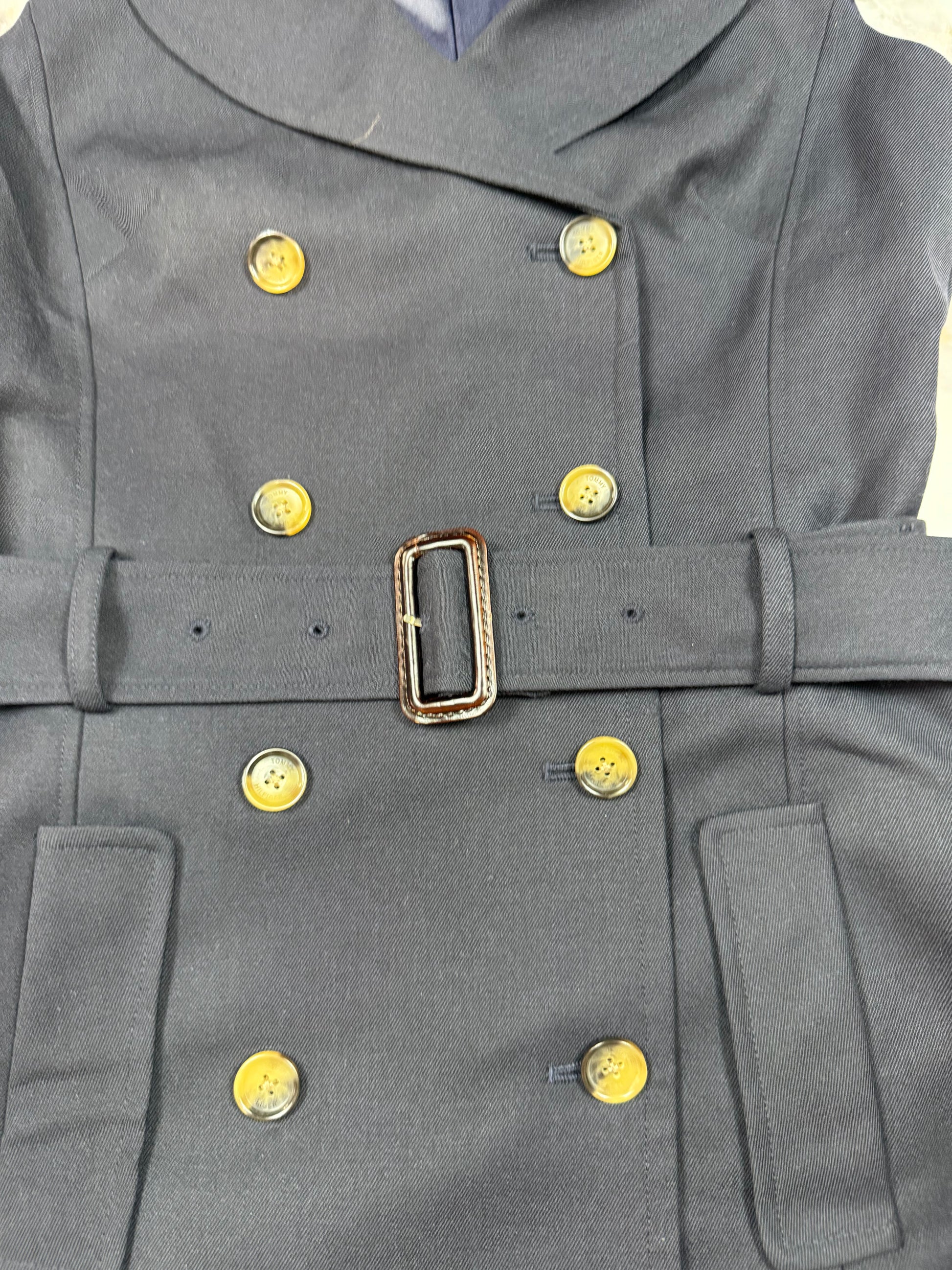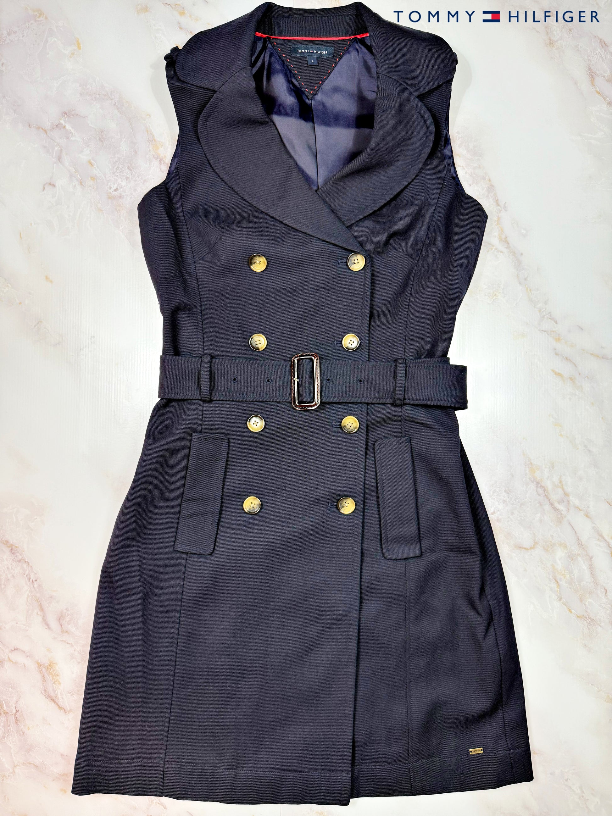 TOMMY HILFIGER|トミーヒルフィガー ノースリーブ ワンピース ネイビー ベルト付き ダブルボタン レディース サイズ4