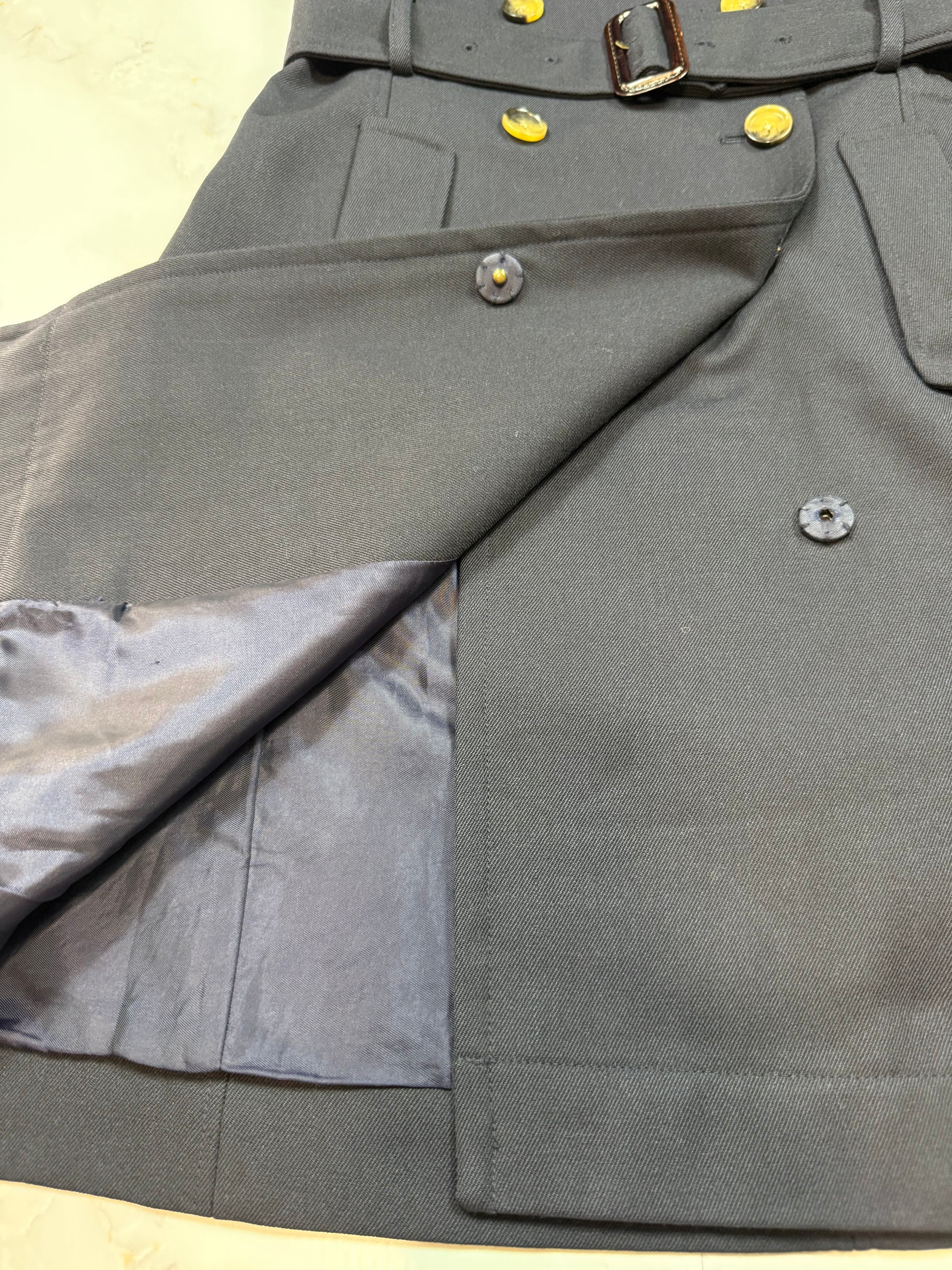 ✨ デザイン:ノースリーブ、ダブルボタン、ウエストベルト付き、裏地あり