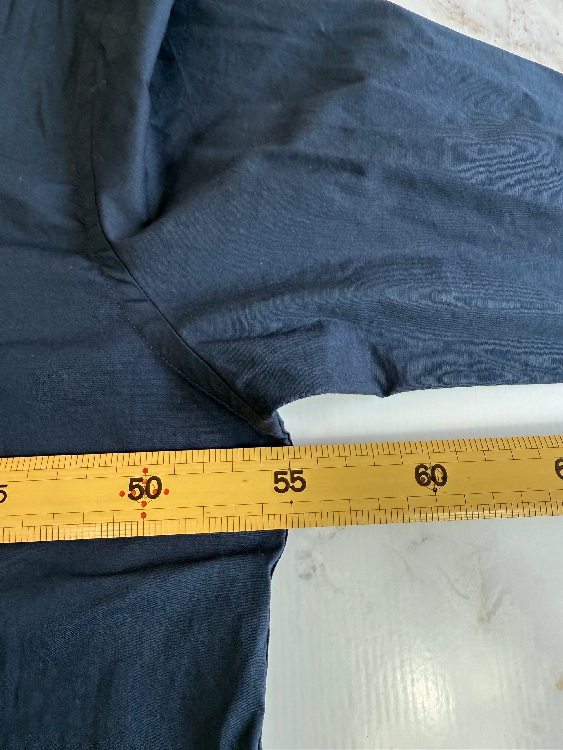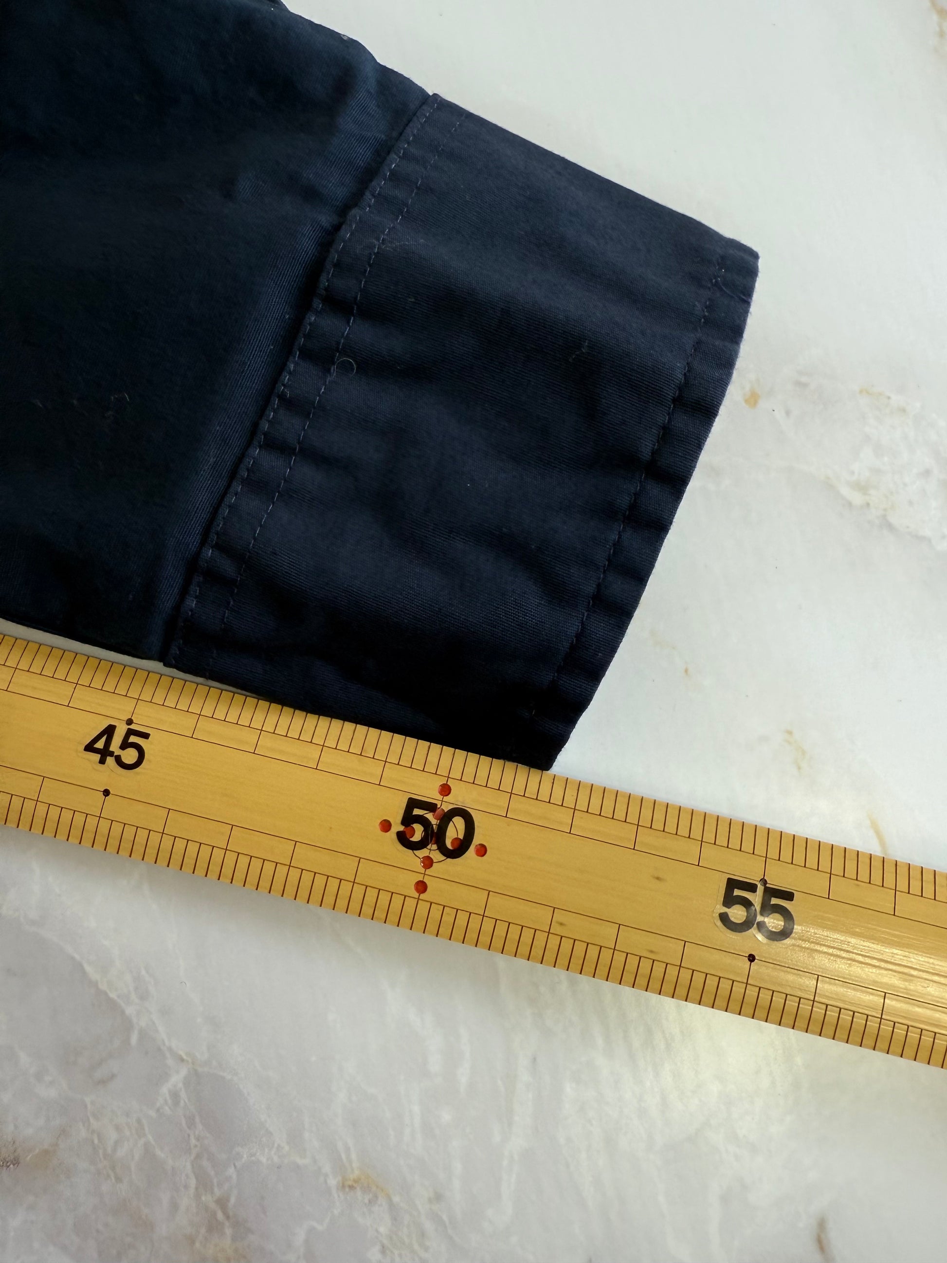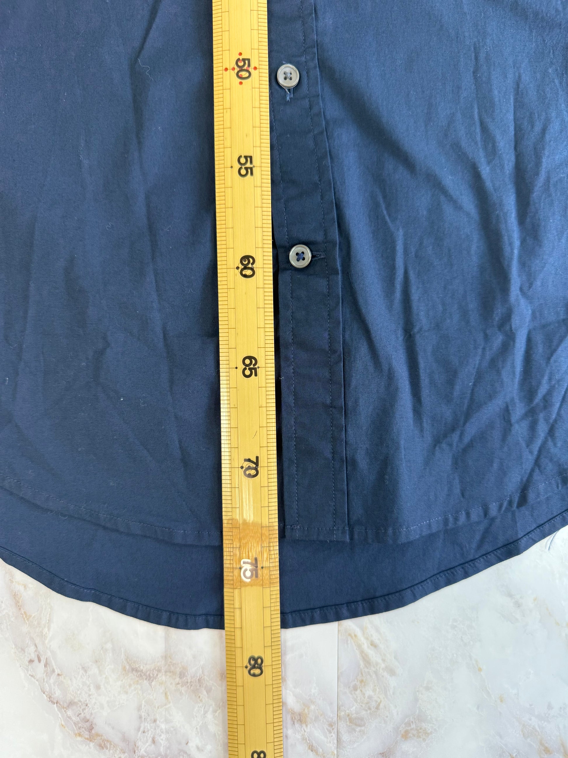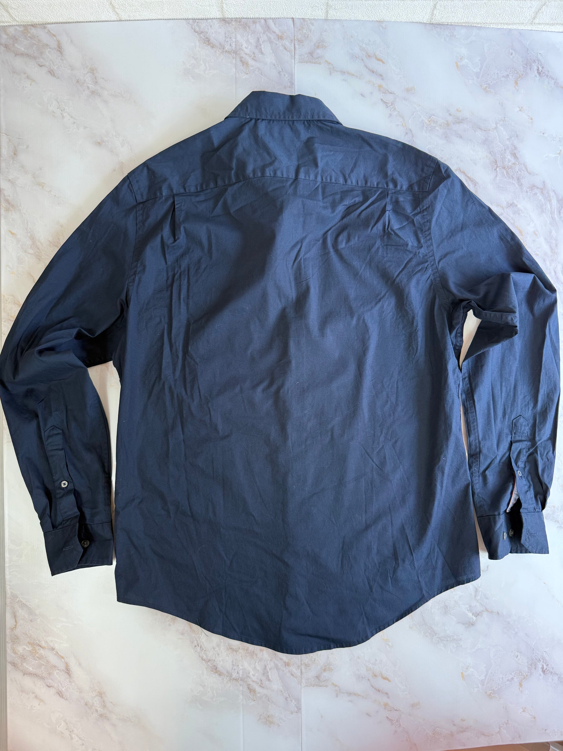TOMMY HILFIGER(トミーヒルフィガー)の長袖シャツです。シンプルな無地ネイビーに胸元のブランド刺繍がワンポイント。カジュアルからビジネスまで幅広く着回せる一枚です。